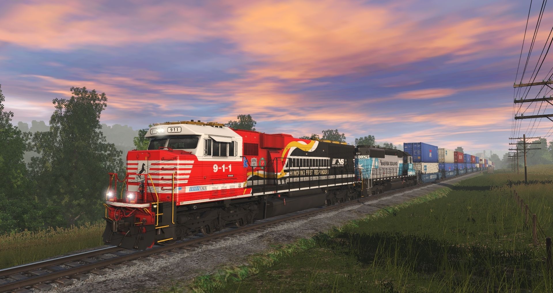 Tags: Trainz Railroad Simulator 2019, Tidewater Point Rail Mod., Tidewater Point Rail Mod. - Default, NS SD60E First Responders, NS Maersk SD40-2 2a1, CSX Intermodal 48 Husky Stack