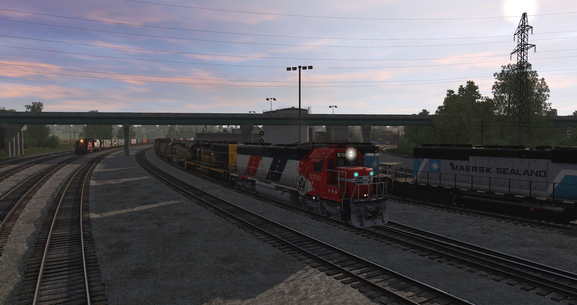 Tags: Trainz Railroad Simulator 2019, Tidewater Point Rail Mod., Tidewater Point Rail Mod. - Default, ATSF SD45-2 Bicentennial, NS Maersk SD40-2 2a1, ATSF SD45-2 blue/yellow stripe, BCR SD40-2 2 tone, SOO SD40-2 Late V3, SOO SD40-2 Late V1, Mijack Translift 1200R, RVSX SW1500, BCI MP2800/C, KCS SD40-2 123 #912 Early, JR Cylindrical Hoppern NMIX