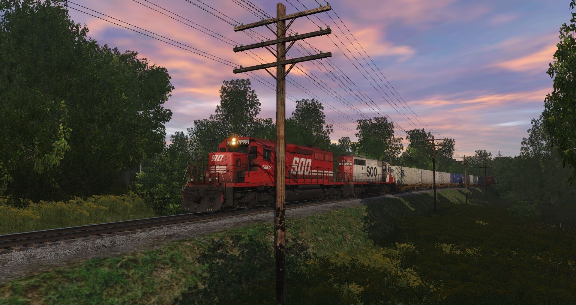 Tags: Trainz Railroad Simulator 2019, Tidewater Point Rail Mod., Tidewater Point Rail Mod. - Default, SOO SD40-2 Late V3, SOO SD40-2 Late V1, 57ft Spinecar B, 57ft Spinecar A, 60ft HC Boxcar CN, WC PC&F 6033, 60ft HC Boxcar TTX Ver1, DTI 50' ACF Boxcar 2, DTI 50' ACF Boxcar 1, AMOX LPG Tank, AHW 50ft Boxcar FMC
