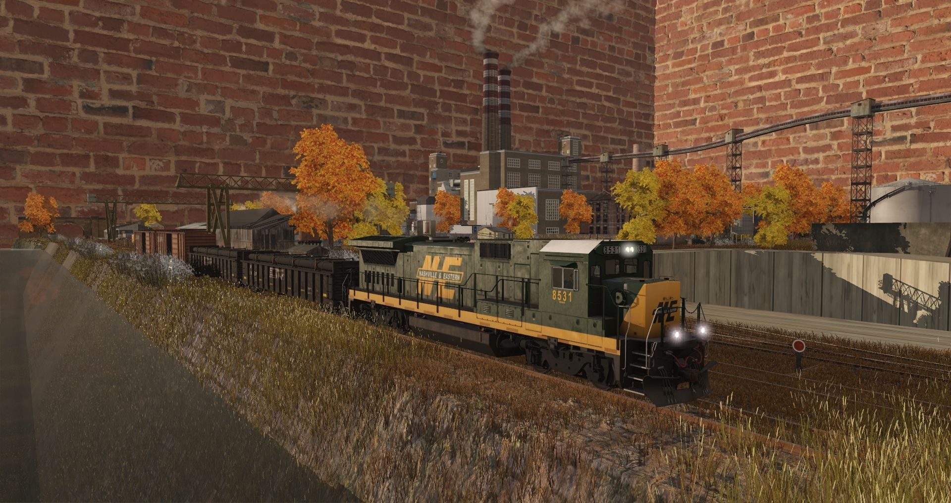 Tags: Trainz Railroad Simulator 2019, TRS19 - The IntenCity Railroad - Model Trainz Layout, Default, N&E B39-8, NS G72 Gondola, NS P-S 50_6ft Waffle Boxcar, NS P-S 50_6ft Boxcar