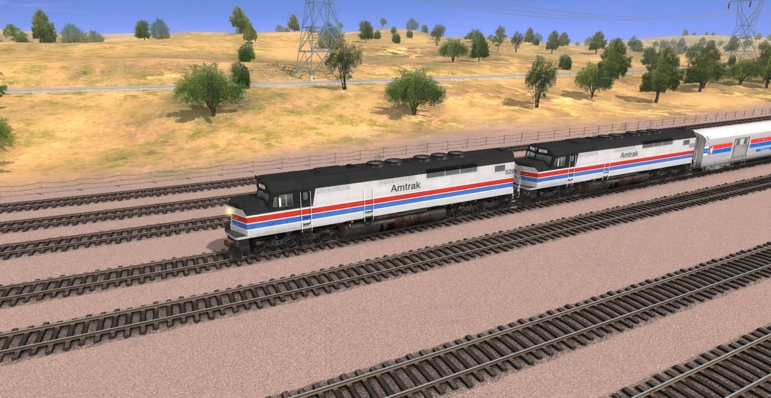 Tags: Trainz: A New Era, Desert Mountain Plains (REVAMPED) V3., AMTK EMD SDP40F 529 Phase II, AMTK EMD SDP40F 533 Phase II, Amtrak Cal. Zephyr - 905, Amtrak II Coach Baggage Superliner, Amtrak II Diner Superliner, Amtrak II Lounge Cafe Superliner, Amtrak II Coach Superliner, Amtrak Cal. Zephyr - 424, Amtrak Cal. Zephyr - 251, CB&Q California Zephyr - 375