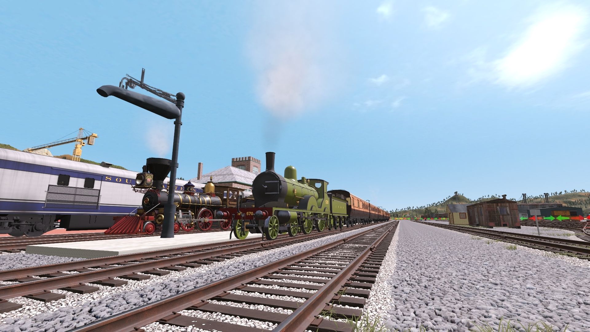 Tags: Trainz Railroad Simulator 2022, Kickstarter County 2 Custom, Kickstarter County 2 custom a - Default, LSWR Adams T3 - Sage Green, Central Pacific 63 'Leviathan, A&WP 290 Engine Excursion V2, NGRX Coach PS Silver, NGRX Baggage 206, LSWR Adams Tender - Sage Green, Central Pacific 63 Tender, Central Pacific Baggage / Mail / Express Car, Central Pacific Arched-Roof Coach 1, LSWR 54 ft Corridor Composite CK (D1225), Central Pacific Clerestory Coach