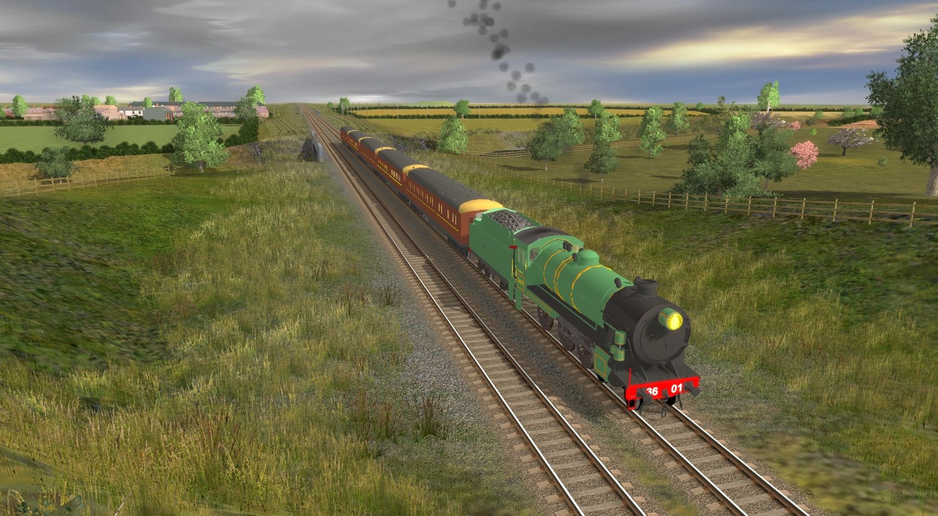 Tags: Trainz: A New Era, ECML Kings Cross - Edinburgh, NSWGR 36 Class Locomotive, NSWGR 36 class tender - TS12 SP1, NSWGR 12 wheel MCE composite car, NSWGR 12 wheel TBC 1st class car, NSWGR 12 wheel AB Dining car