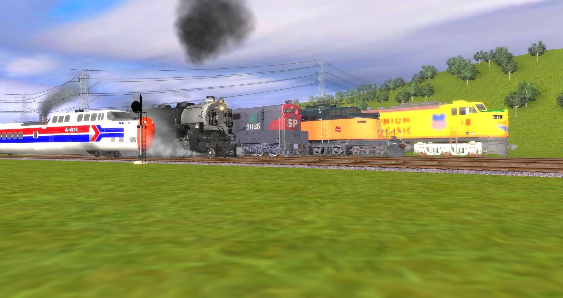 Tags: Trainz: A New Era, Industrial Wasteland USA, UP 9000 Locomotive, UP GE 8500HP Gas Turbine A-Unit, TM SP, TUME-71001753-MILW-EF4, Amtrak TurboTrain PDC, UP GE 8500HP Gas Turbine B-Unit, UP 9000 Tender, Amtrak TurboTrain IC, UP Auxiliary Tender