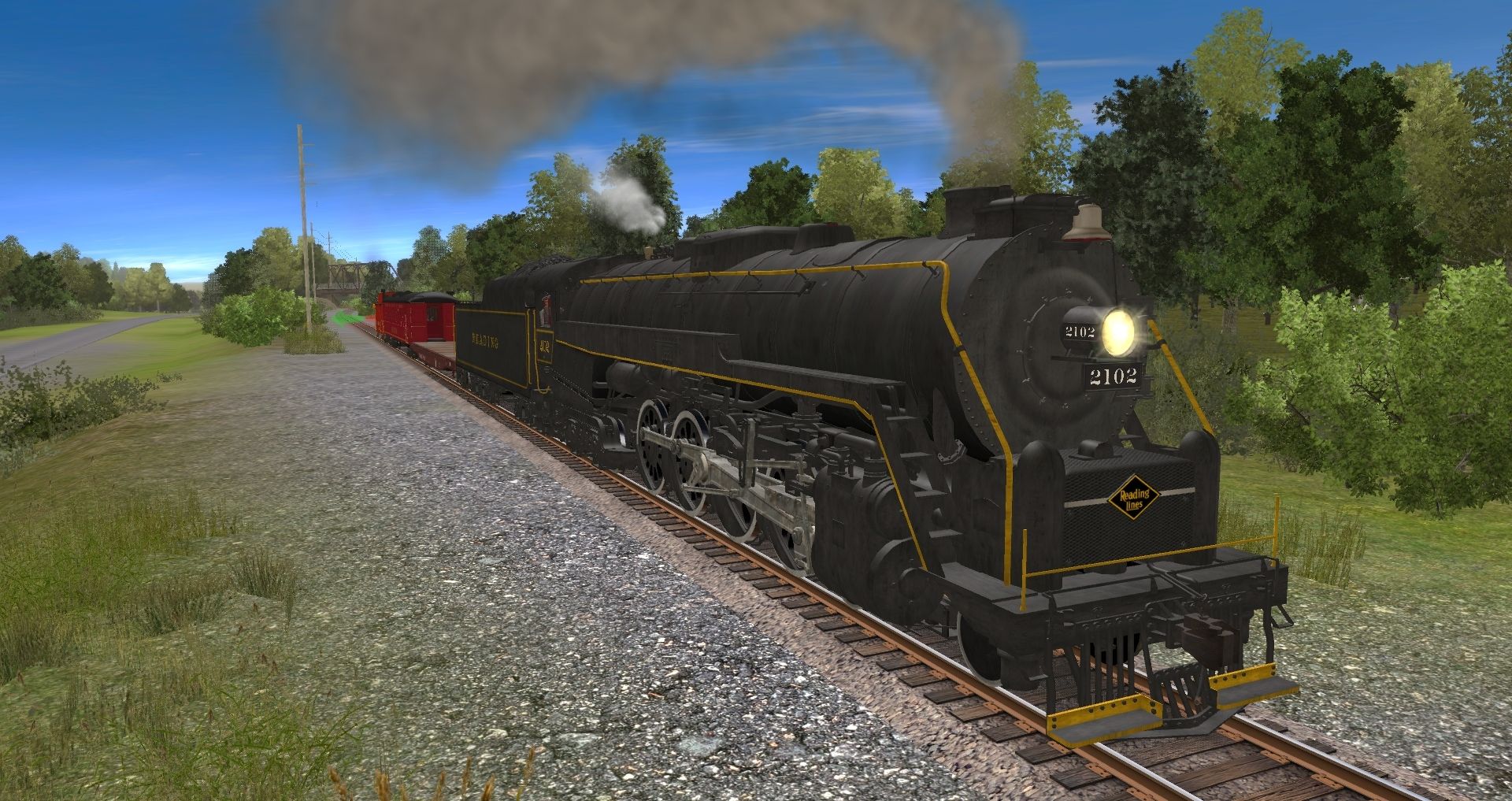 Tags: Trainz: A New Era, READING & NORTHERN TANE (post-2020), Reading T1 Rambles Engine, Reading T1 Rambles Tender, Flatcar BNSF 60ft #917504 TS12, R&N Open Air Red, RDG NMn Caboose V2, Invisible Train