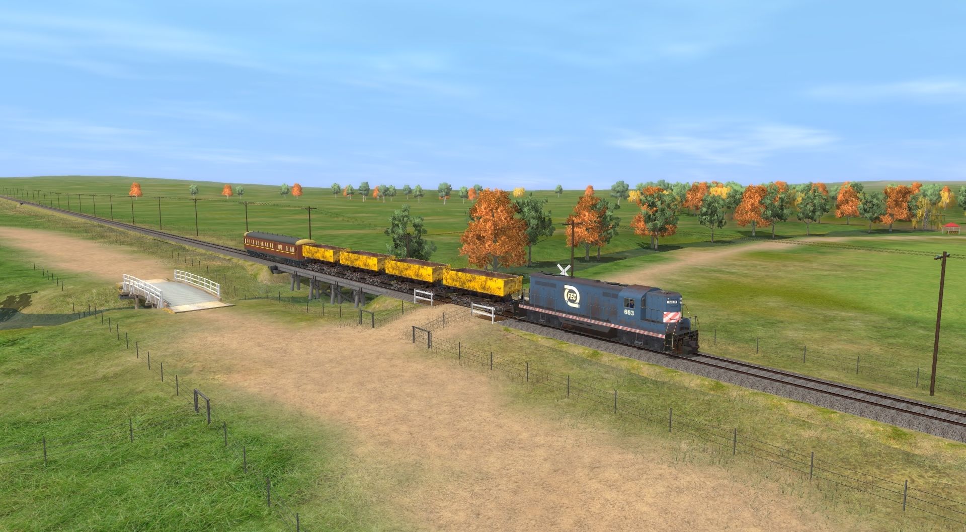 Tags: Trainz: A New Era, Healesville - 1913-1920, EMD GP9 FEC #663, Hopper PKP SideDump Fa 409Va yellow, NSWGR 12 wheel MCE composite car