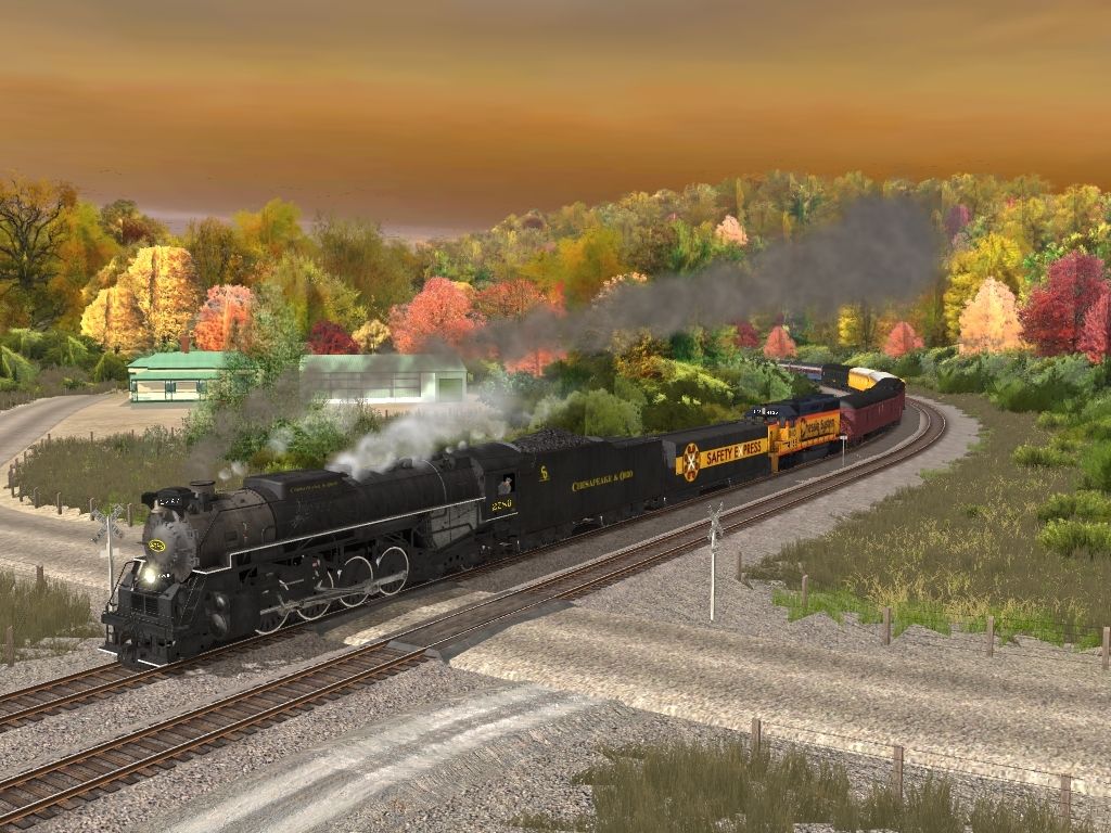 Tags: Trainz: A New Era, Tidewater Mainline, C&O Kanawha Engine (TP&P 2718/JW 2760), Chessie GP40-2 (B&O ph1), C&O Kanawha Tender (TP&P 2786), Chessie Safety Express Aux Tender S2, R&N RPO Powerpak Red Faded, R&N Pullman Sleeper Red Faded, Chessie Safety Express 07 Budd Coach, Chessie Safety Express 04 Coach Roundtop, NGRX Coach Betterment, NGRX Coach PS Colored, NGRX Sleeper PS 10-6