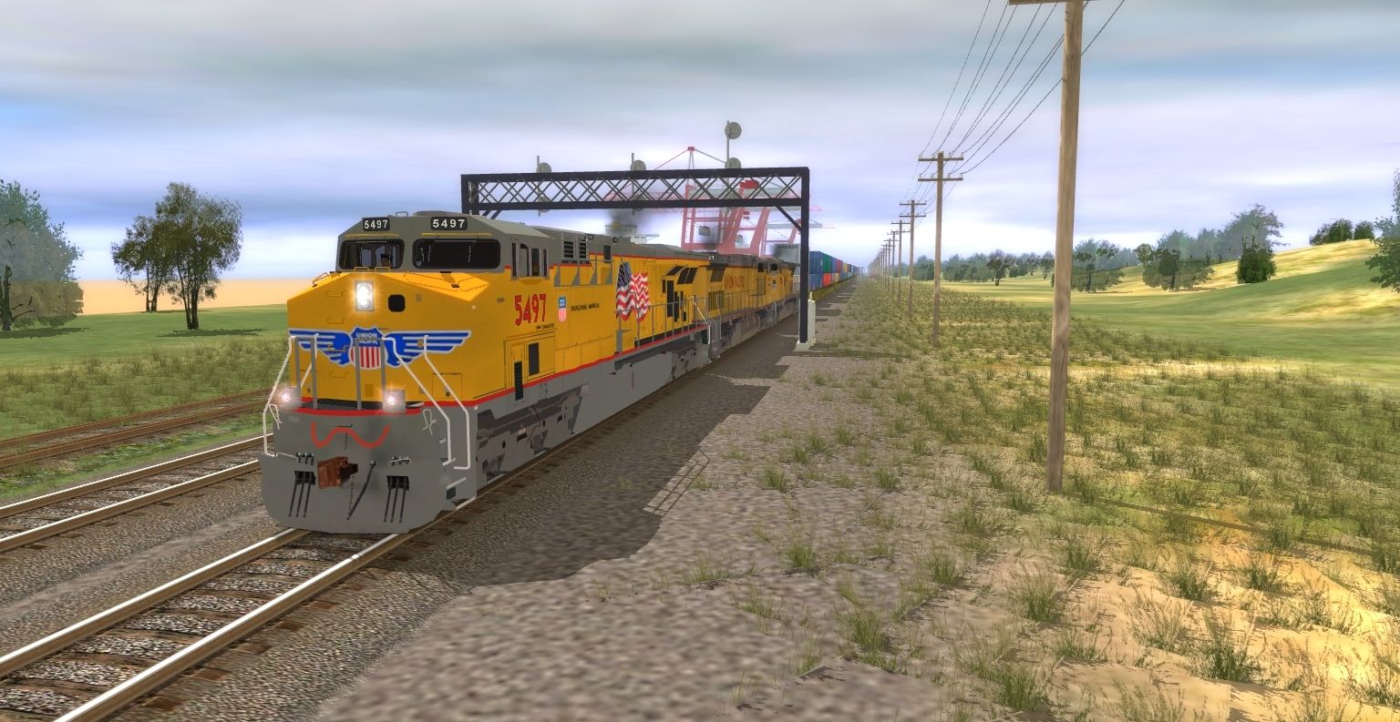Tags: Trainz: A New Era, Desert Mountain Plains, GE ES44AC UP 5353-5553 Weathered, UP C44-9W, UP C44-9W Lightning Stripe, EMD SD40-2 UP #, TTX 40ft Thrall Well Car A 748185, TTX 40ft Thrall Well Car C, TTX 40ft Thrall Well Car B 748184
