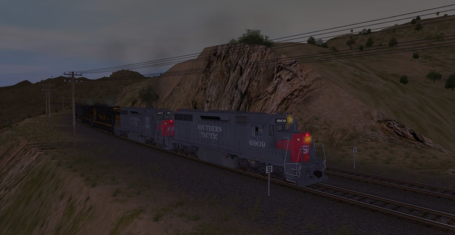 Tags: Trainz: A New Era, Desert Mountain Plains, EMD SD35 SP #6909, EMD SD35 SP #6927, EMD GP60 DRGW #3156, EMD GP60 DRGW #3155, SP SD70M, SP SD45, SP C40-4 Caboose - early version ver. 2, TankTrain A