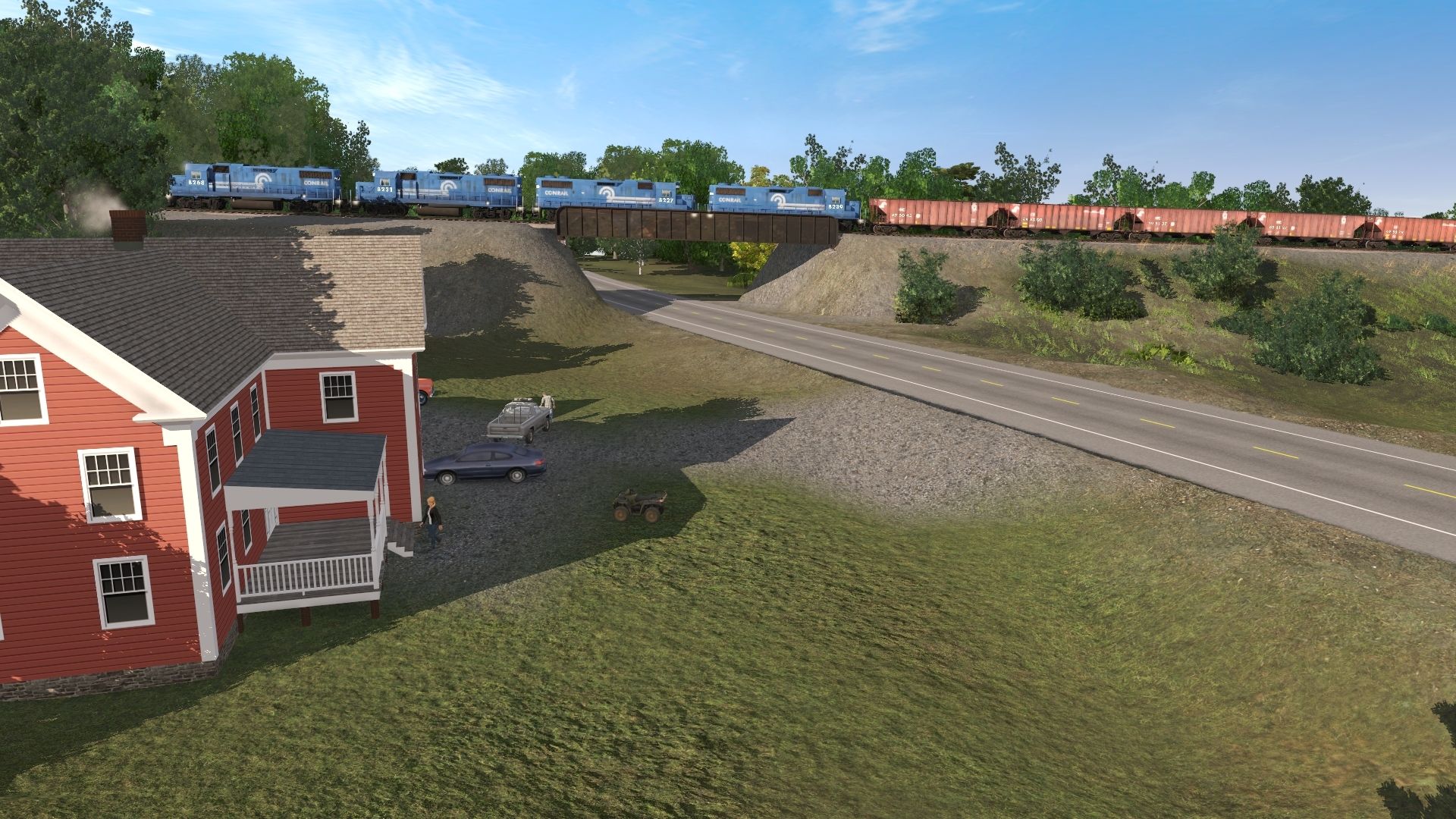 Posted by: billm001 | Posted:2022-04-08 21:07:44 Caption: Tags: Trainz Railroad Simulator 2019, South Fork Secondary, L&R double, CR GP38-2, CR 100 Ton Hopper