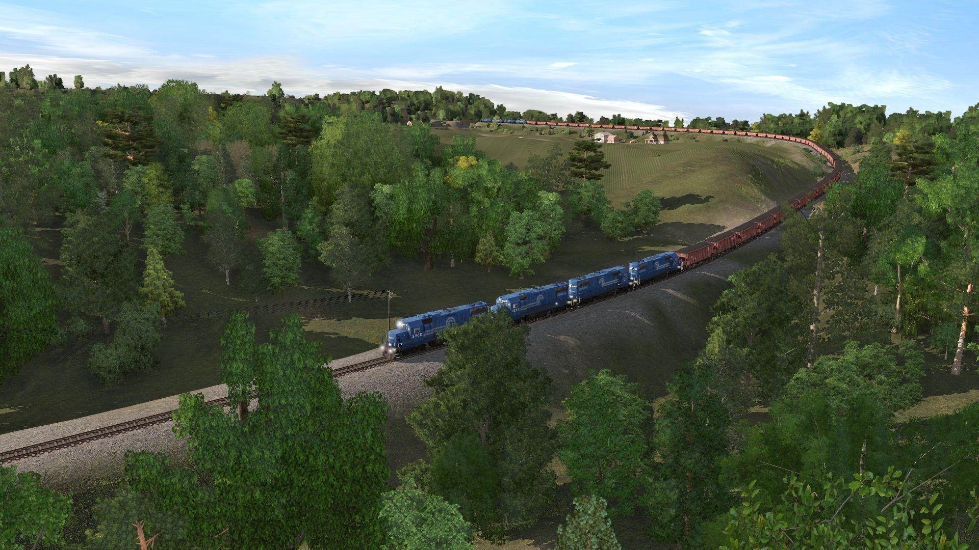 Posted by: billm001 | Posted:2022-04-08 21:23:06 Caption: Tags: Trainz Railroad Simulator 2019, South Fork Secondary, L&R double, CR GP38-2, CR 100 Ton Hopper