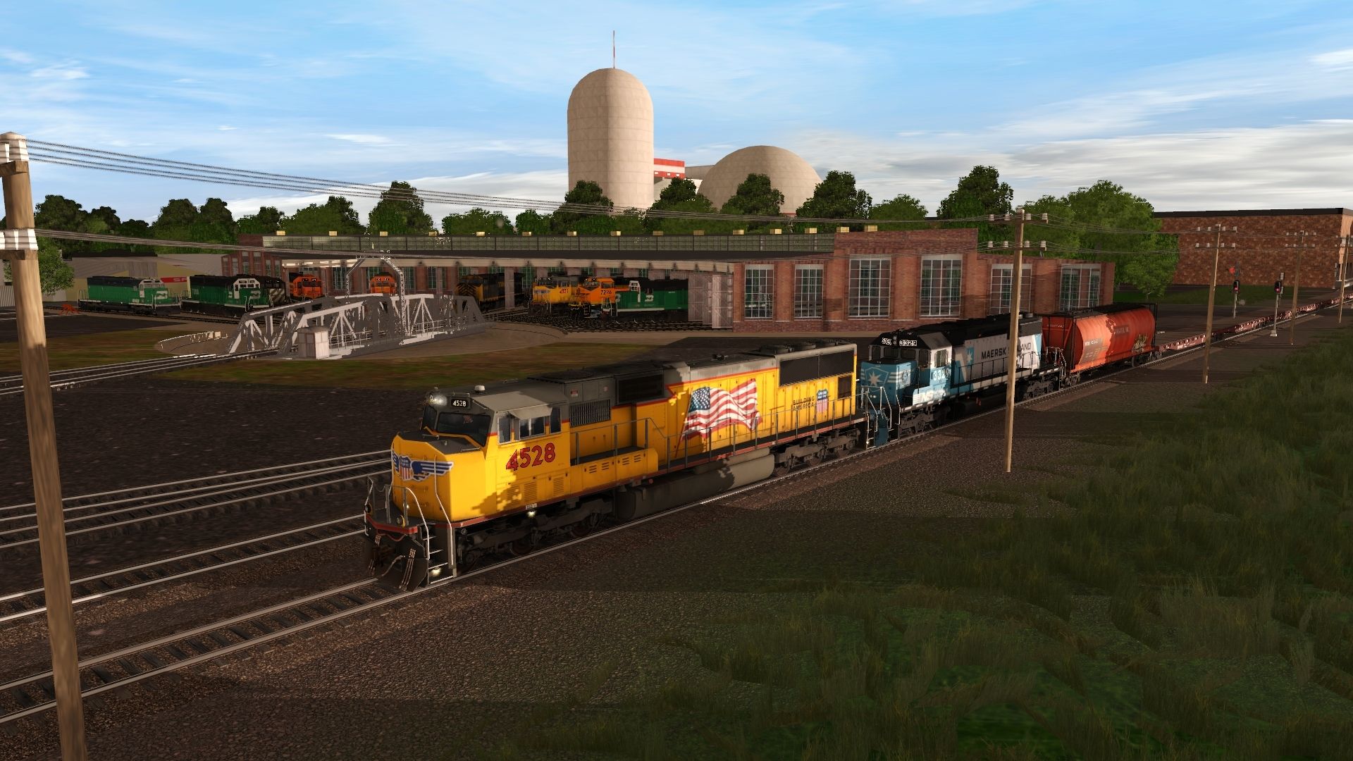 Tags: Trainz Railroad Simulator 2022, Arkansas and Missouri Railway, Default - 18:30 08/04/2022 - 40:37, UP SD70M Flag, NS Maersk SD40-2 2a1, BNSF ES44DC, BN SD40-2 #7308, Utah Belt AC4400CW 4400-4450 TS19, BN GP38-2 dirty, BNSF GP38-2, BNSF SD40-2 H3, BN SD40-2 white cab, UP SD40-2, WTXX Cylindrical Hopper