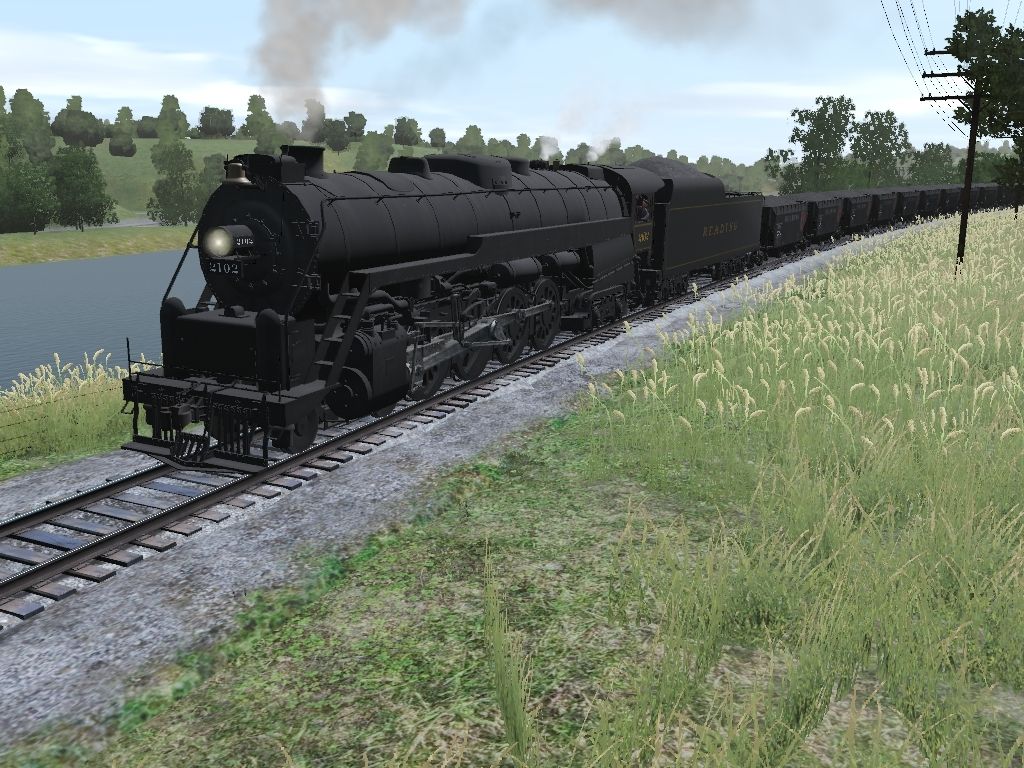 Tags: Trainz Railroad Simulator 2019, Tidewater Point Rail, Reading T1 Freight Engine, Reading T1 Freight Tender, Reading 55 Ton Hopper Roman Lettering, RDG NMn Caboose V1, Invisible Train