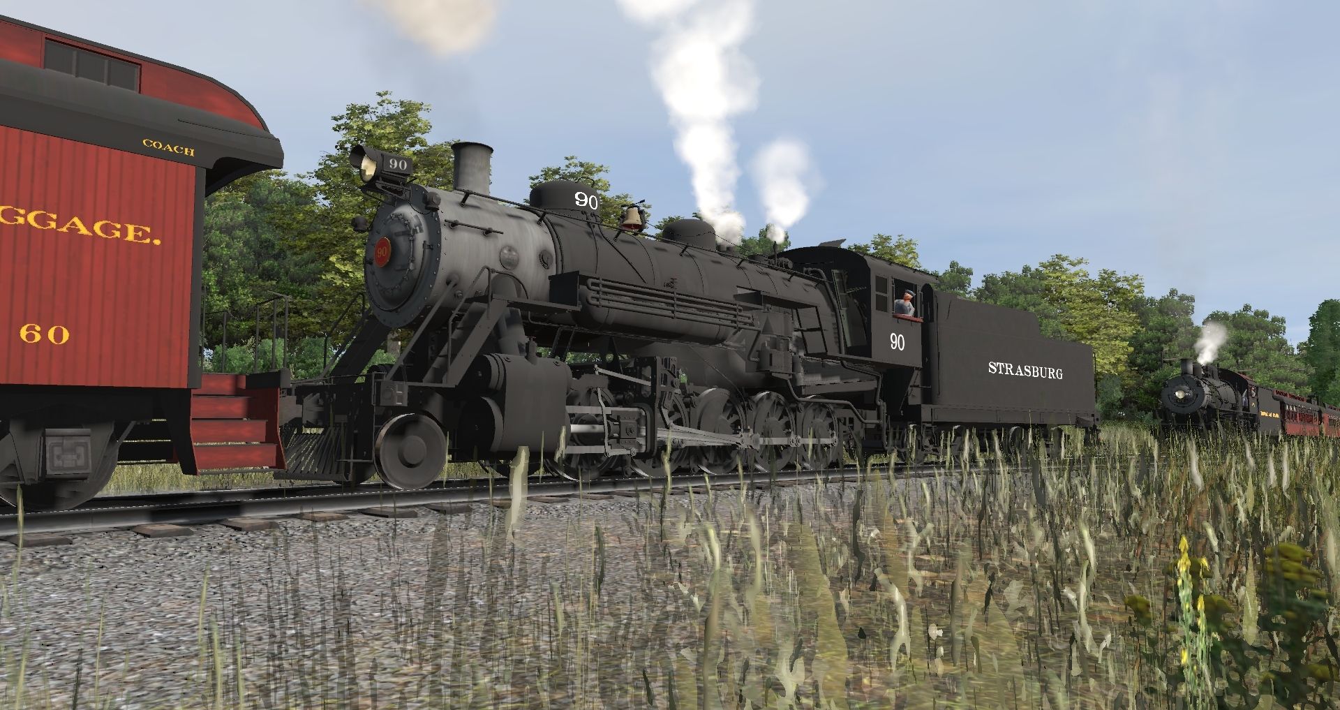 Tags: Trainz Railroad Simulator 2019, Strasburg Rail Road, A.I Session, SRC 90 Engine V8, SRC 475 Engine V3, SRC Combine Donald E L Hallock, SRC 90 Tender V6 & V7, SRC Coach Cherry Crest, SRC Coach Huber Leath, SRC 475 Tender V3, SRC Coach Mill Creek, SRC Parlor Marian, SRC Open Window Pleasant View, SRC Dining Lee E Brenner
