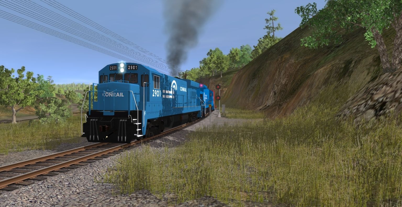 Tags: Trainz: A New Era, C&O Hinton Division, Conrail U33B, Conrail GE B23-7 #2002 (Conrail Quality), CP 221934, CP 254749, Coil Car NW 169848, Coil Car NW, CNWX Cylindrical Hopper, CNW 180288 3 Bay ACF, CN 389299 4bay acf, CN 388100 3 bay acf, CHMX 20800 gal tank car
