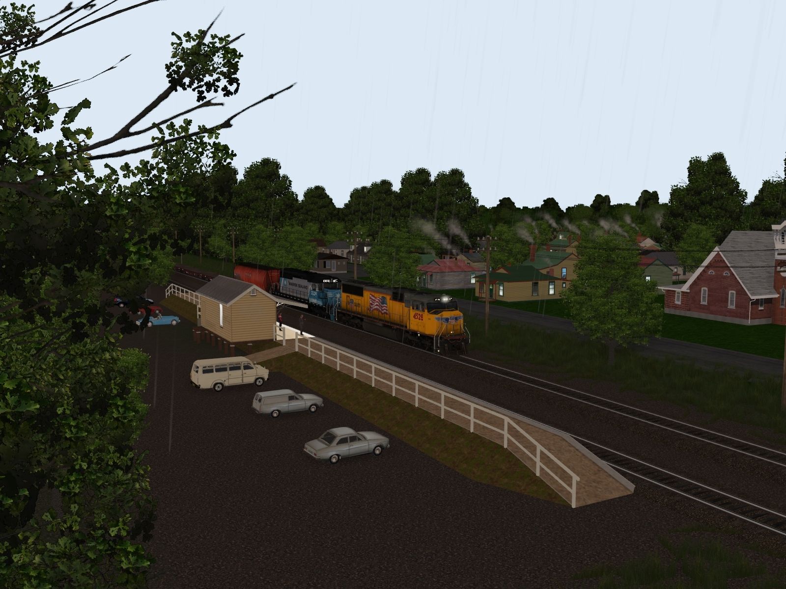 Tags: Trainz Railroad Simulator 2022, Arkansas and Missouri Railway, Default - 19:50 10/04/2022 - 13:19, UP SD70M Flag, NS Maersk SD40-2 2a1, WTXX Cylindrical Hopper, BNSF Flat car 917504, HP_50ft_Boxcar_TTX_#08, HP_50ft_Boxcar_BNSF_#07, ACTX CB 20800 gal tank car, JR 50ft Boxcar CHAT #1, Bethgon JRLX, Bethgon TGNX, Bethgon KCLX