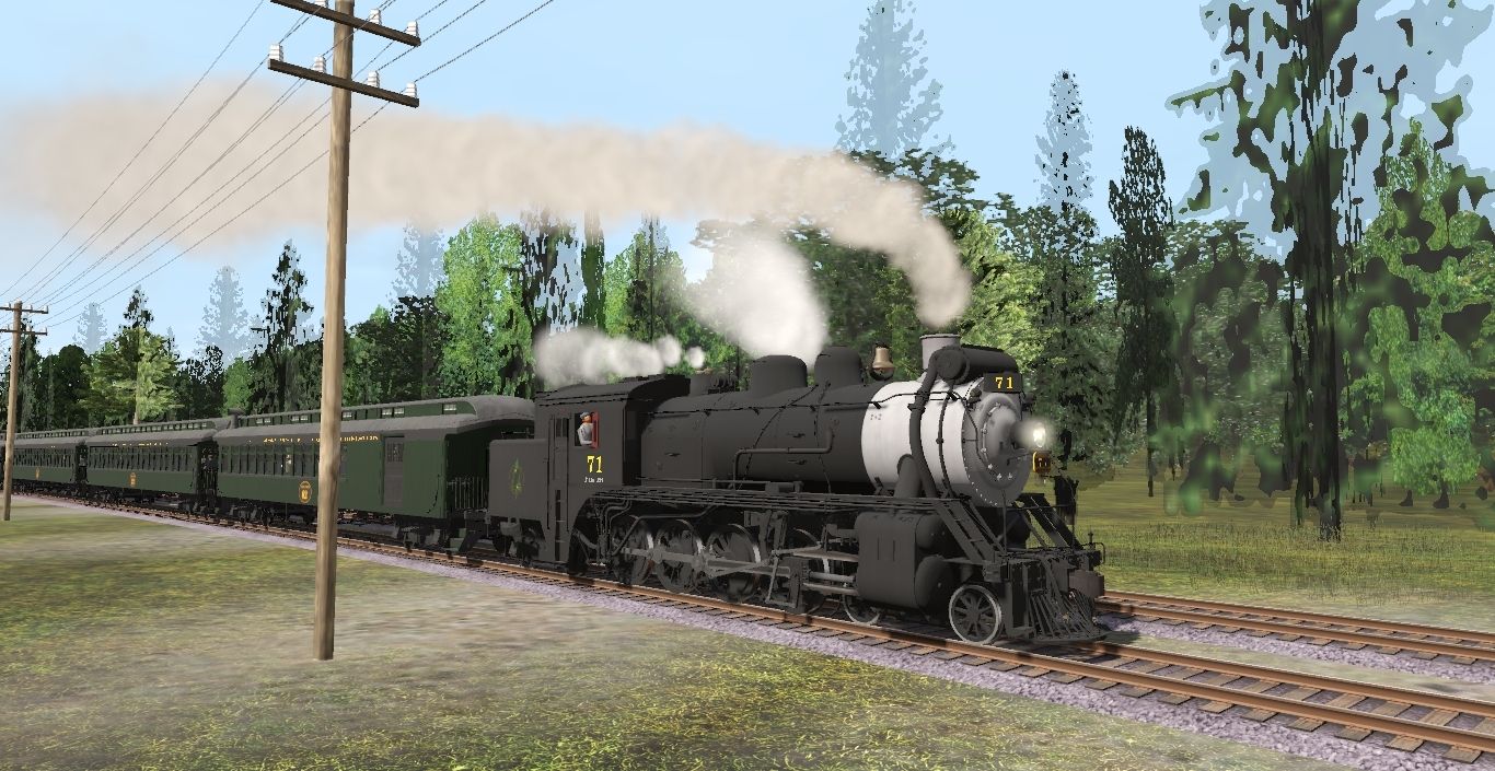 Tags: Trainz Railroad Simulator 2019, Muskatawnee Interurban, Inagural Run, Muskatawnee & Caprio Southwestern X11a Engine, Muskatawnee & Caprio Southwestern Wood Combine #62, Muskatawnee & Caprio Southwestern Wood Coach #22, Muskatawnee & Caprio Southwestern Wood Coach #21, Muskatawnee & Caprio Southwestern Wood Lounge 'John Stark, Muskatawnee & Caprio Southwestern Wood Diner 'Green Mountain