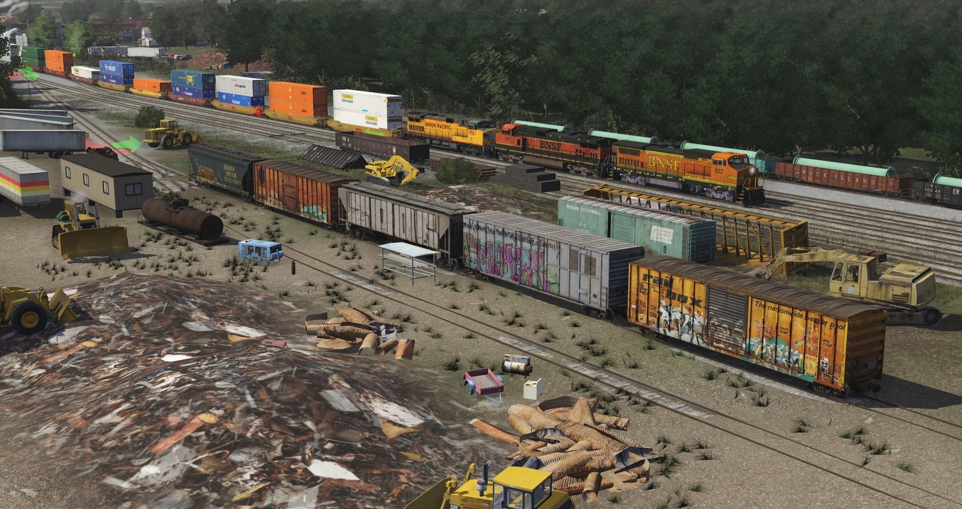 Tags: Trainz Railroad Simulator 2019, NS Horseshoe Curve V0.3, BNSF B40-8W Weathered, BNSF H1 Dash 9-44CW, UP Dash 9-44CW-Lightning Stripe, RBOX2 50ft Boxcar FMC, AS-Boxcar NKCR 2 (graffiti), FTFX Trinity 3 Bay Hopper, BKTY 50ft Boxcar FMC, AMTK ACF Gondola 13272, NKP Greenville Gondola, EL Greenville Gondola, SSW Centerflow 3 Bay long hatch