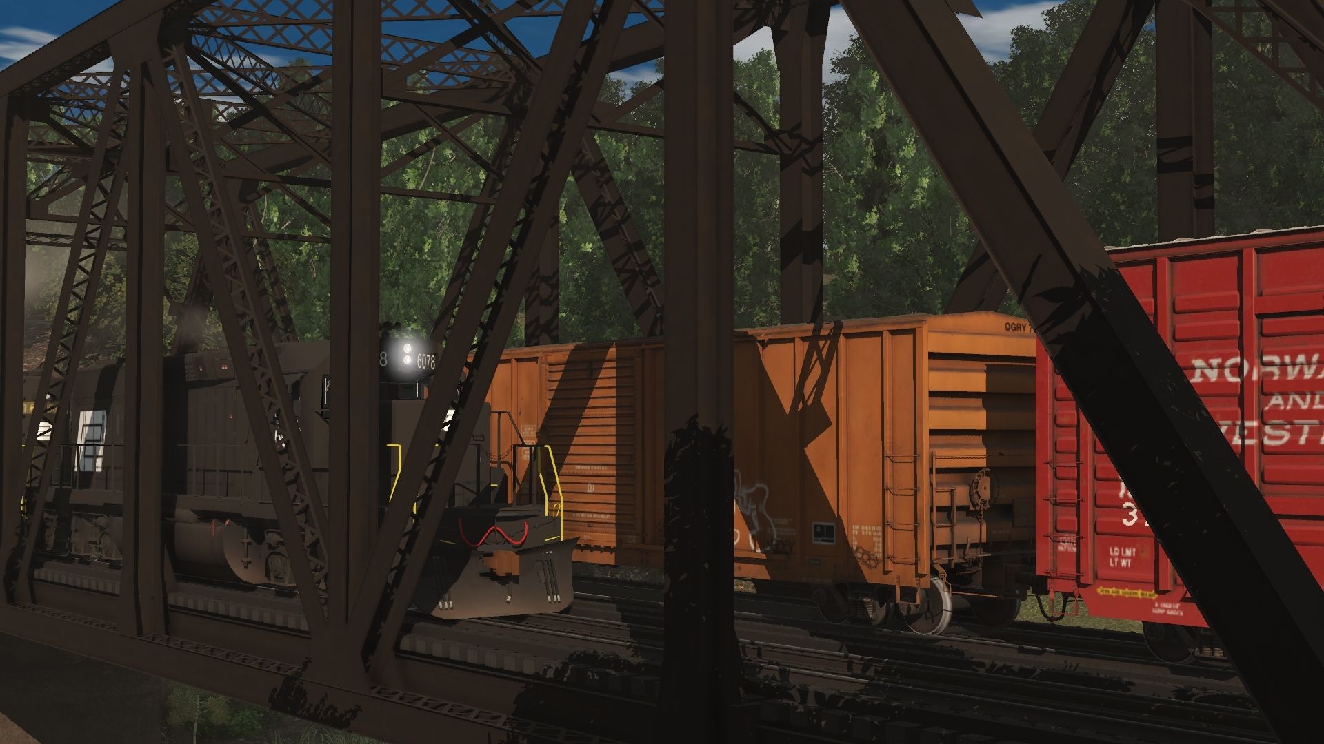 Tags: Trainz Railroad Simulator 2019, Coal Country, EMD SD40 PC #6078, EMD SD35 Penn central #6016, PC RS27, Alco C425 PC (Ex PRR) #2434, PC SW1500 #9565, PC C636, PC SD9 Cab Signal Box, PC SD9, NWRR 60ft Boxcar PS (Autoparts), BN ACF Centerflow 3 Bay long hatch, QGRY 50ft Boxcar FMC