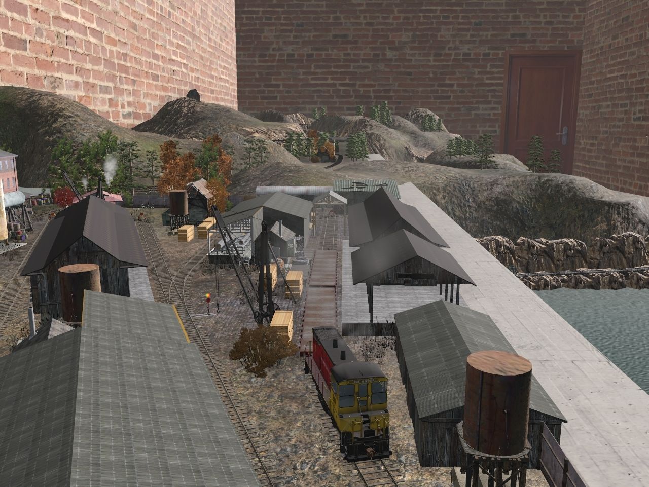 Tags: Trainz Railroad Simulator 2019, TRS19 - The Innter Kohn Necktion Railroad - Model Trainz Layout, Innter Kohn - Session 2 Flat Cars - 2. logs loaded, Morristown & Erie SW1500 #20, BNSF Flat car 917504, JRPX ACF Centerflow 4 Bay round hatch, Barge Float Empty, Log Wagon Short Knuckle, Custom 40' Boxcar - #5, Custom 40' Boxcar - #3, Custom 40' Boxcar - #4, Custom 40' Boxcar - #6, Custom 40' Boxcar - #1, NSWGR bogie fuel tanker 9000g 1955 AMPOL
