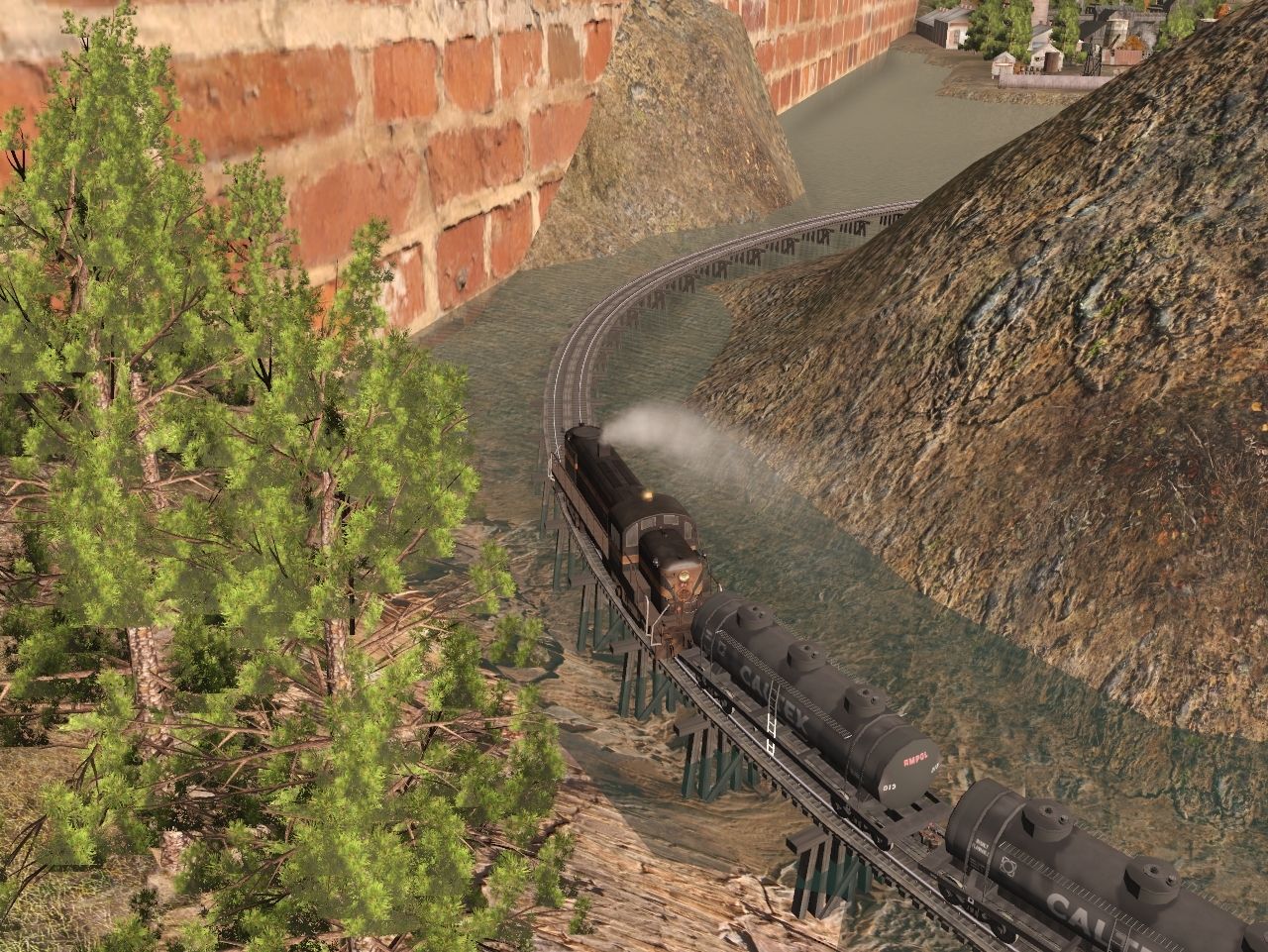 Tags: Trainz Railroad Simulator 2019, TRS19 - The Innter Kohn Necktion Railroad - Model Trainz Layout, TRS19 - The Innter Kohn Necktion Railroad - Session 1 Tank Cars, Alco RS-3 Trinity Bay #160, NSWGR bogie fuel tanker 9000g 1955 CALTEX, NSWGR bogie fuel tanker 9000g 1955 AMPOL, NSWGR bogie fuel tanker 9000g 1955 SHELL, Custom 40' Boxcar - #4, Custom 40' Boxcar - #6, Barge Float Empty, Custom 40' Boxcar - #5