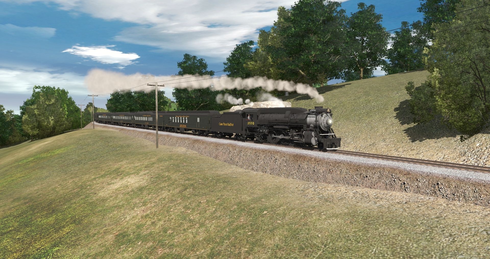 Tags: Trainz Railroad Simulator 2019, Datsun Junction, Default, CPR(Streanline) Mikado Engine, CPR MS-1 Tender, CPR Railway Post Office, CPR Baggage-Buffet-Lounge V2, CPR Sleeper 14 Section V2, CPR Sleeper 10-2 V2, CPR Dining Car, CPR Sleeper 8-1-2 V2, CPR Observation 3-2