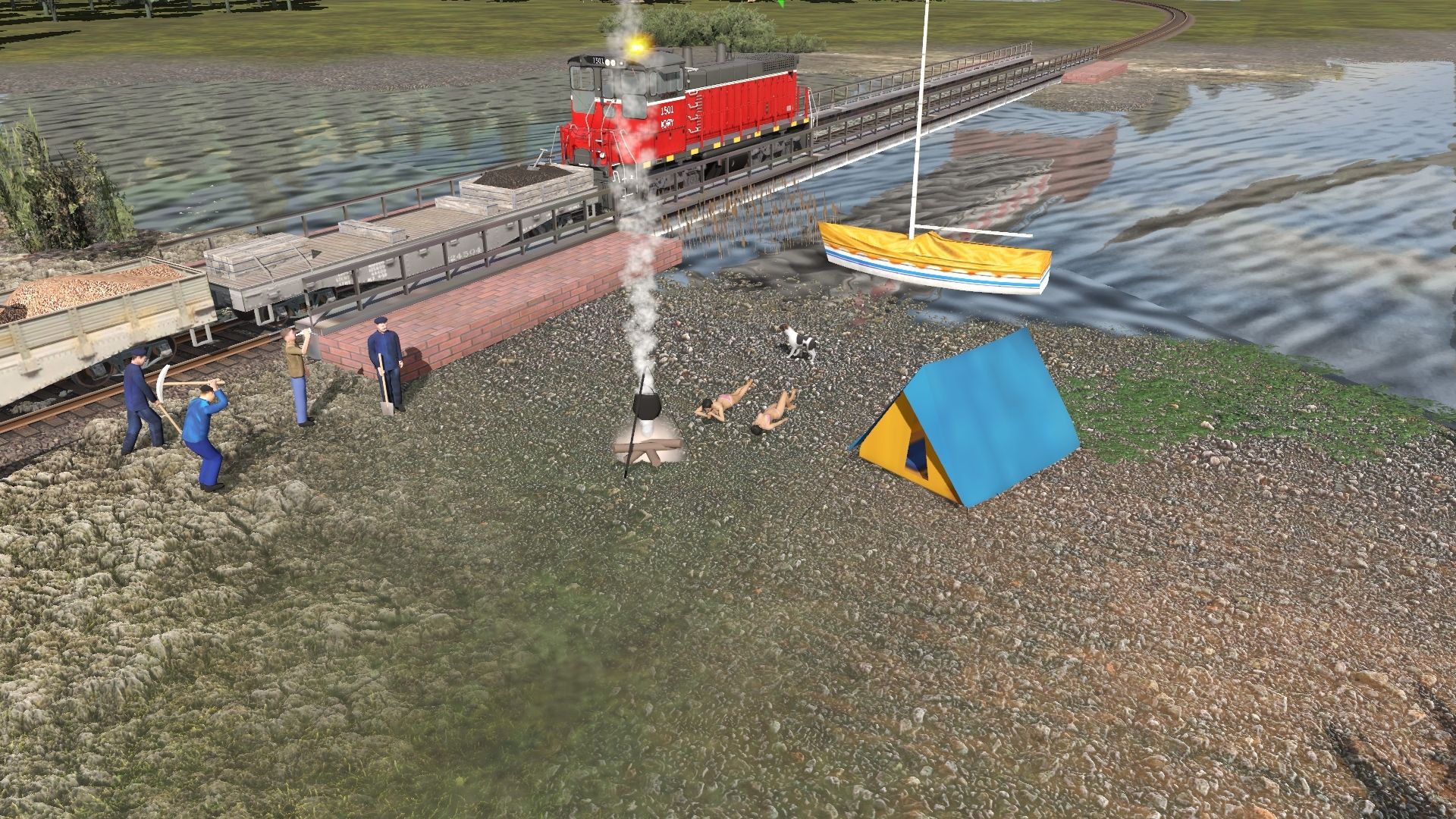 Tags: Trainz Railroad Simulator 2019, 1950's New, Default, SW1500 IORY 1501 Indiana & Ohio Railway, Loco UP 0-6-0 #4609 TS12, NG Maintenance Caboose, NG Maintenance Flat Car, Loco UP 0-6-0 #4609 Tender TS2010, Log Wagon Short Knuckle, Caboose Virginian wide