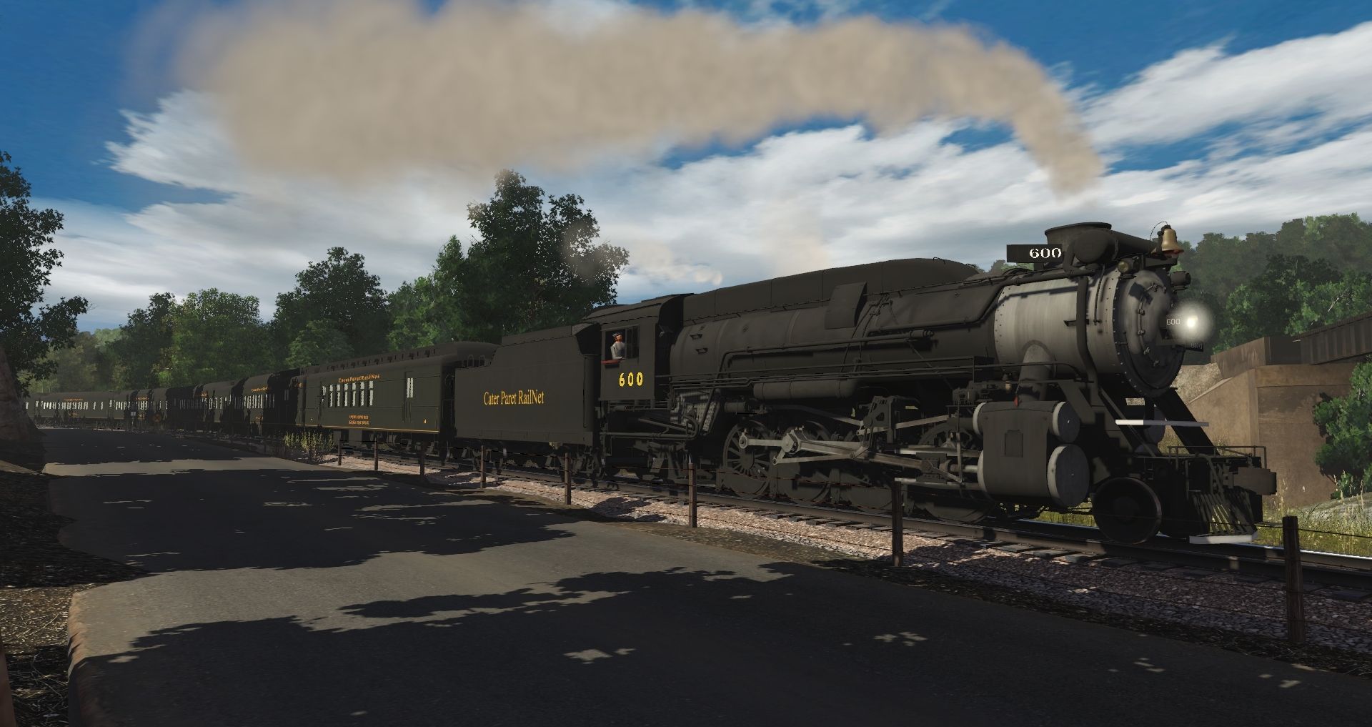 Tags: Trainz Railroad Simulator 2019, Coal Country, Default, CPR(Streanline) Mikado Engine, CPR MS-1 Tender, CPR Railway Post Office, CPR Baggage-Buffet-Lounge V2, CPR Sleeper 14 Section V2, CPR Sleeper 10-2 V2, CPR Dining Car, CPR Sleeper 8-1-2 V2, CPR Observation 3-2