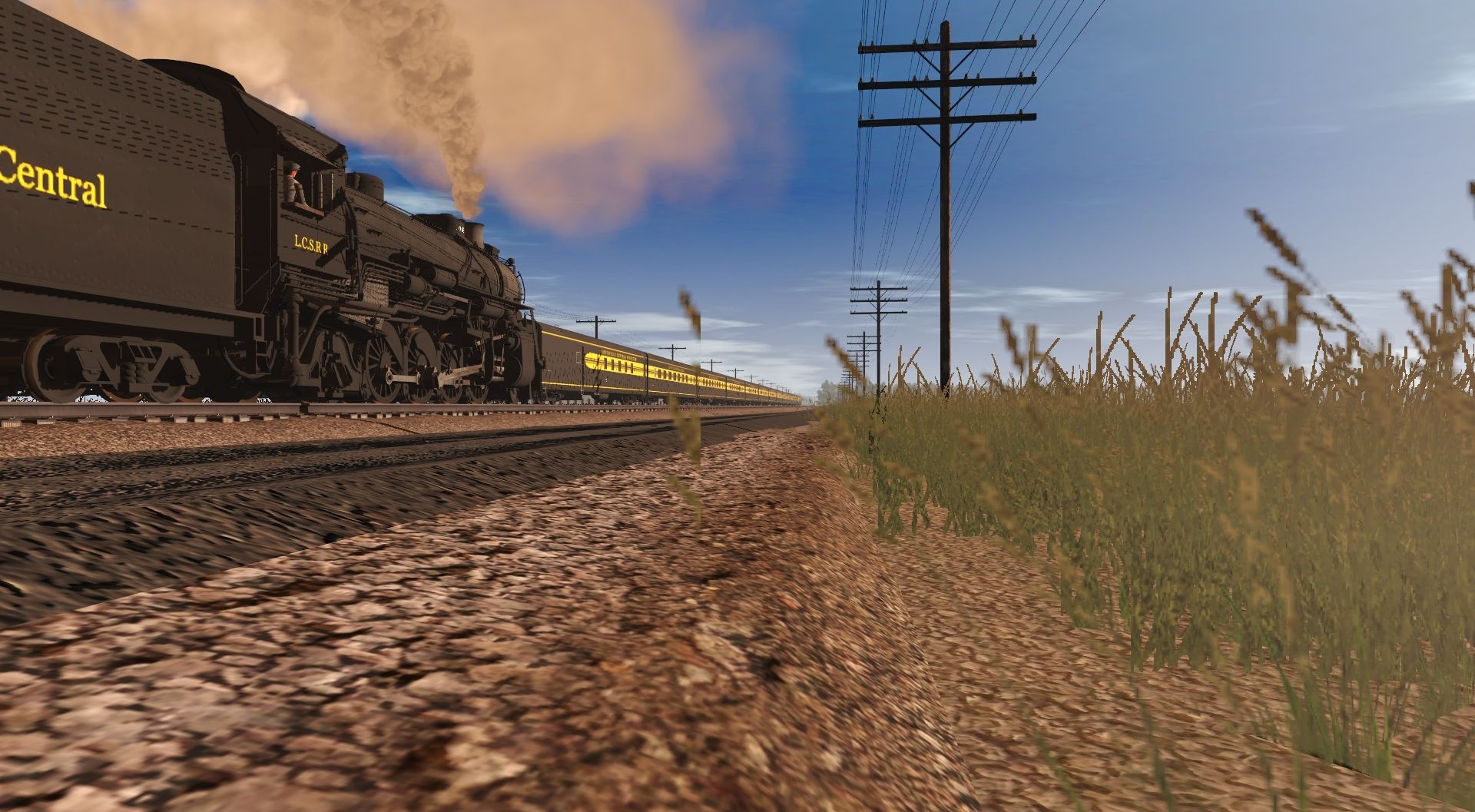 Tags: Trainz Railroad Simulator 2019, Plains Route (TRS19), Default, LCS F1-a Mikado, LCS J1 Hudson, Invisible loco, LCS F1-a Tender, LCS I-1 Tender, 40ft Boxcar DL&W Phoebe Snow Weathered, LCS Lightweight Baggage-Dorm, 40ft Boxcar DL&W Automobile Weathered, 40ft Boxcar NKP, LCS Lightweight Coach, 40ft Boxcar DL&W Automobile