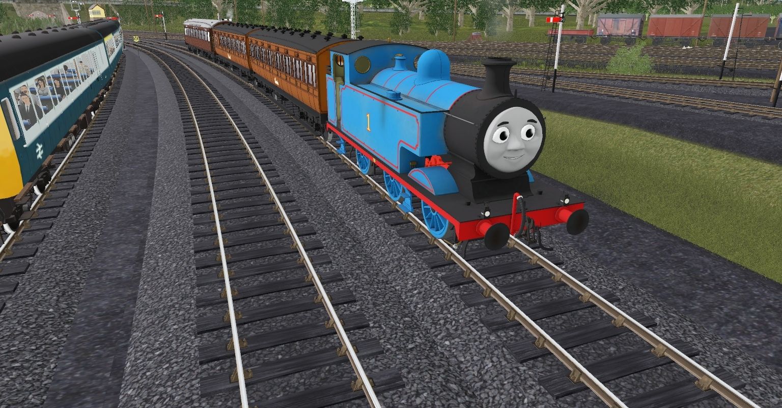 Tags: Trainz Railroad Simulator 2019, ECML EDINBURGH - DUNDEE, NWR No.1 'Thomas' 1960 (Rebuild), BR Class 117 DMBS blue grey, BR Class 117 DMS blue grey, BR Class 26/1 Blue discs IS, NWR Annie With Face, BR standard van, NWR Clarabel With Face, BR Class 117 TCL blue grey, BR Freight CAR Brake Bauxite, BR 12T Fitted Van, GCR Barnum 3'rd Saloon LNER