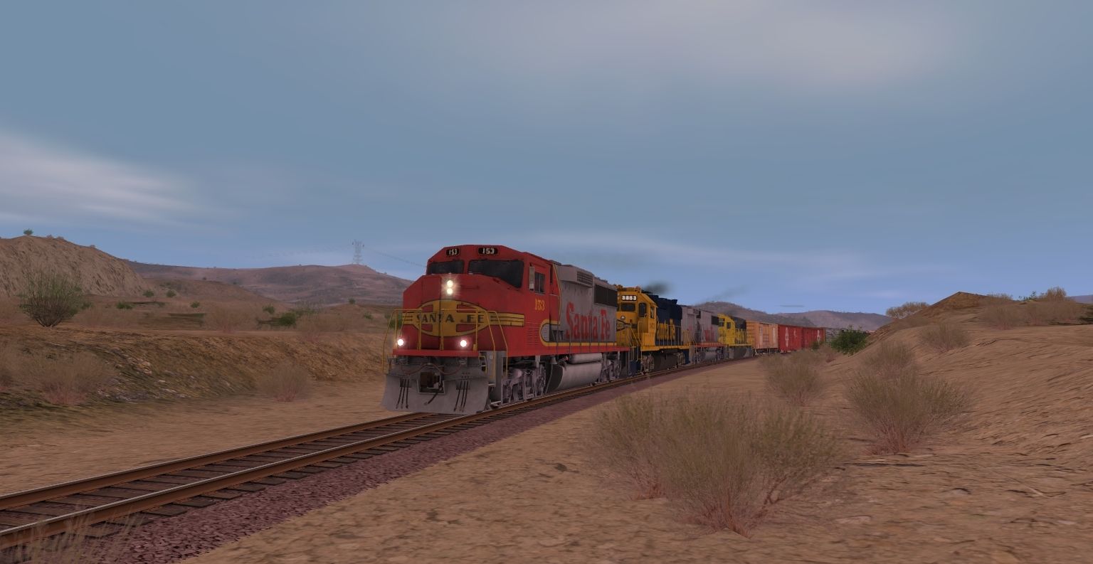Tags: Trainz: A New Era, Cajon Subdivision - 1990 Part 1: The Pass, ATSF GP60M, GP50 ATSF #3853, ATSF GP60B, EMD GP60 ATSF #4031, 60ft Boxcar UP 361141, 60ft Boxcar ATSF 2, 60ft Boxcar ATSF, TTPX 62Ft. Bulkhead, T108 AZXX 20000-20111 TRN 29188 gal, ATSF 60ft Boxcar PS (Autoparts), ATSF 60ft Boxcar PS [Late] (Autoparts)