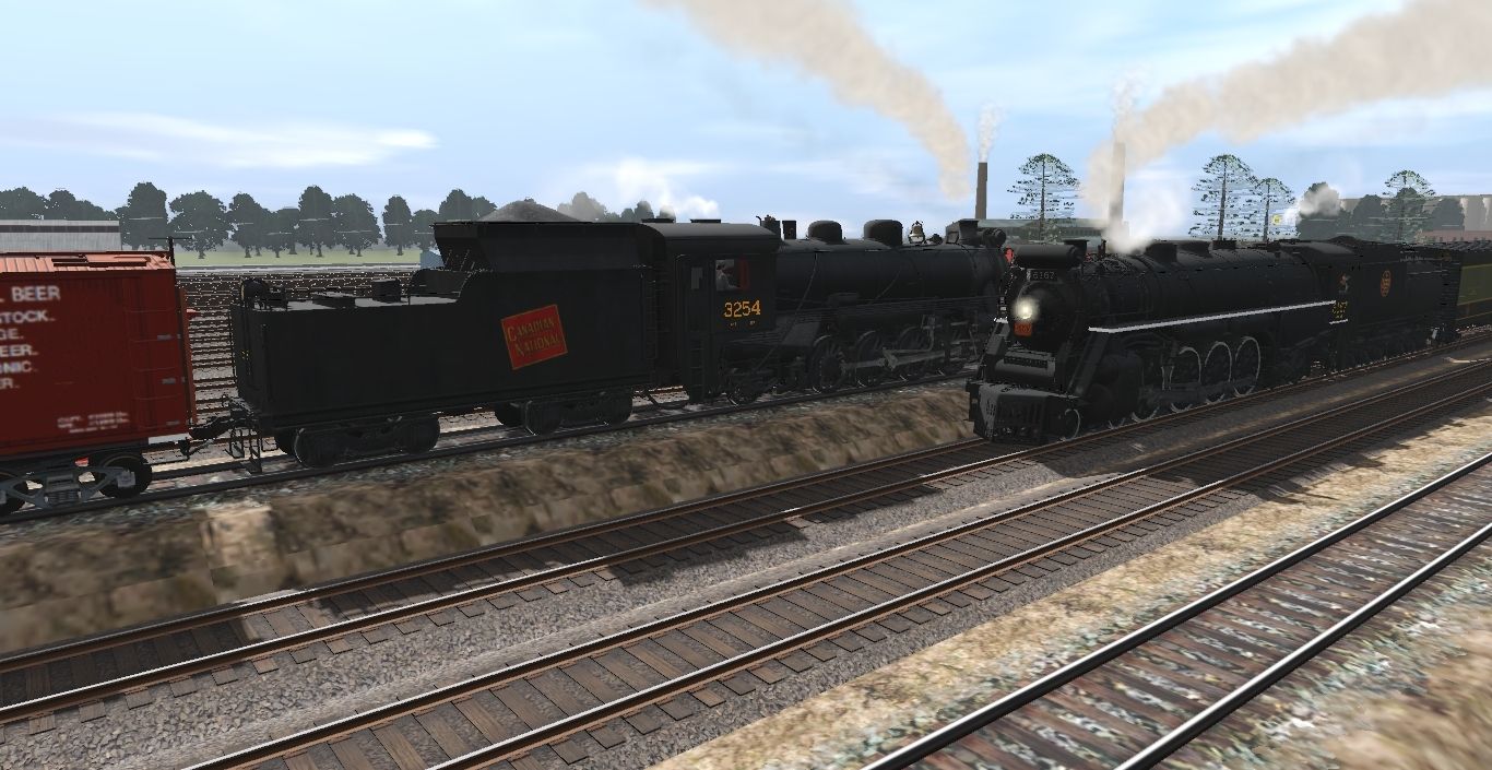 Tags: Trainz Railroad Simulator 2019, Toronto Rail Lands 1954, CN S1b Engine, CN U2e Engine, TTC PCC 1, CP K1a Northern Engine, CPR H1d 4-6-4 2860 (Revenue Service), CN RDC Old, Reefer ACF 40 ft Bosch Beer DES, CN S1b Tender, Reefer ACF 40 ft The Drunken Hessian Beer DES, Reefer ACF 40 ft Maple Joe Maple Syrup DES, CN U2e Tender