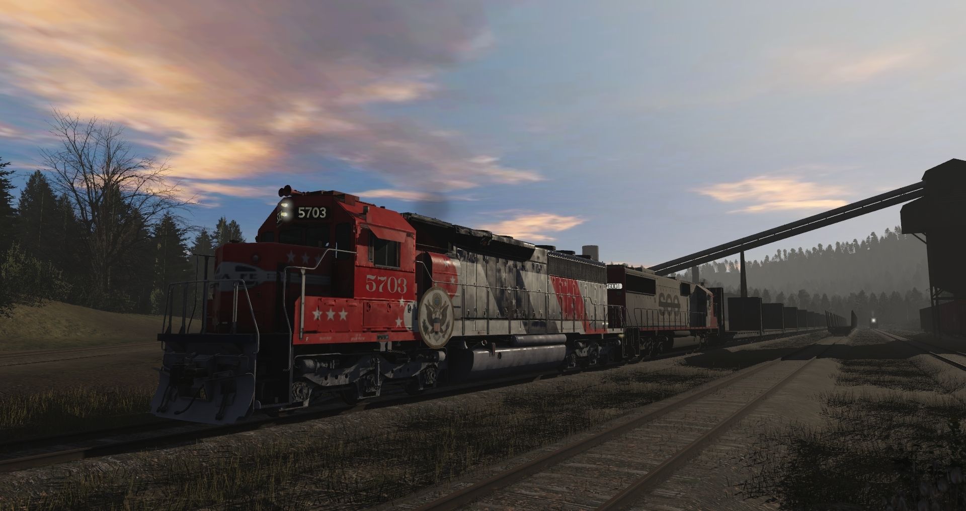 Tags: Trainz Railroad Simulator 2019, Eagle River Railway, 01 Monday - 14:57 21/05/2022 - 00:19:01, ATSF SD45-2 Bicentennial, CEFX/Ex Soo SD60, ERSX GMD-1 77 (Ex CN), ERSX BW9 #30, ERSX 60Ft.9In. woodchip gondola, ERSX 54ft flatcar, D&H 62ft Bulkhead, ERSX Brake Control Car, ERSX MOW 100 Ton Hopper, Eagle River 03 Boonton Coach, Eagle River 06 Open Air Coach