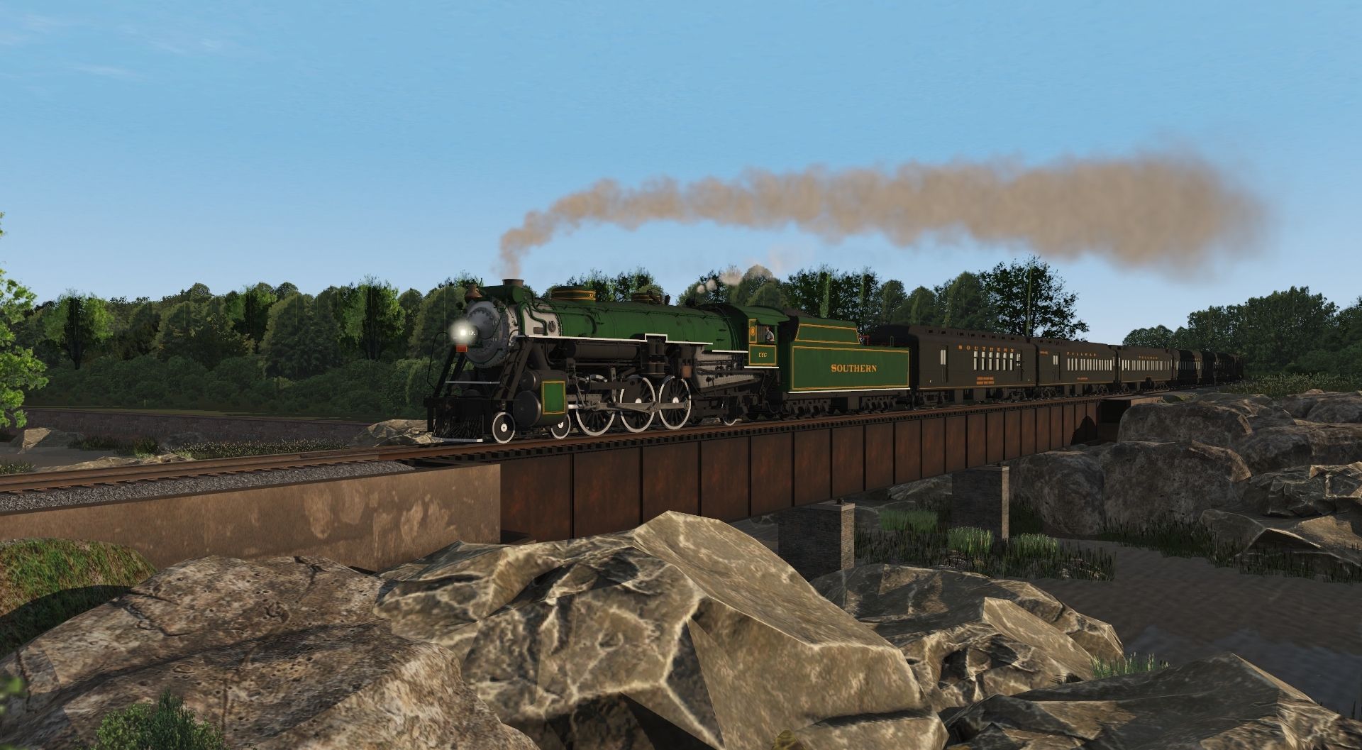 Tags: Trainz Railroad Simulator 2019, Georgian's Paradise, Flying Cam, Southern Ps-4 Engine Modernized, Southern Ps-4 Tender Modernized, Southern Railway Post Office, Southern Baggage-Buffet-Lounge V2, Southern Sleeper 14 Section V2, Southern Sleeper 10-2 V2, Southern Dining Car, Southern Sleeper 8-1-2 V2, Southern Observation 3-2
