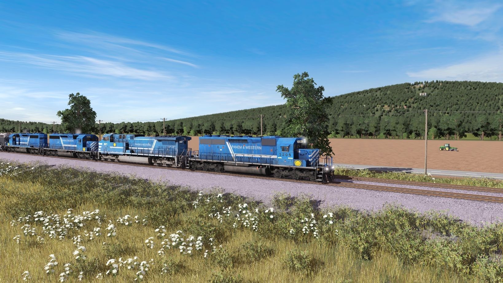 Tags: Trainz Railroad Simulator 2019, PWRR Go nyoom, PWRR Go nyoom - Default, Panem & Western SD40-2 Cab Light (K3LA), Panem & Western GE AC4400CW, Panem & Western EMD SD40-2, CVRY GP35, Animated Combine, LNER horse drawn parcel van - trotting, wagon ore loadable - walking, Panem & Western Boxcar, CVRY 52ft Gondola, CVRR 52ft Gondola, 73ft Centerbeam WPRR 2