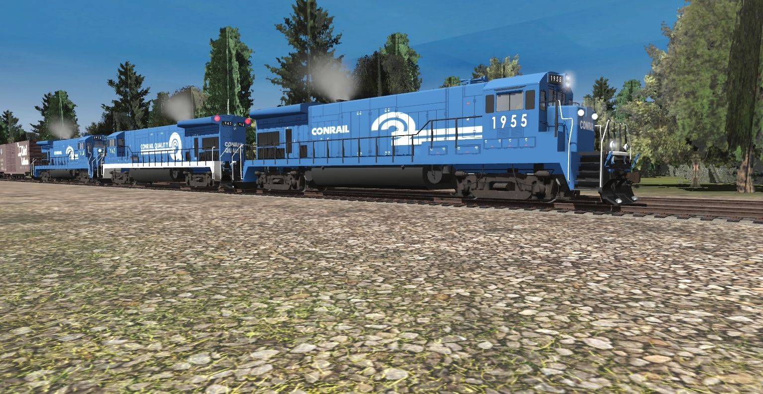 Tags: Trainz Railroad Simulator 2019, Valley Mountains Railroad (Part Of The Eagle County), VMR Base Session V2, GE B23-7 Conrail, GE B23-7 Conrail Quality, 52ft Boxcar ATSF Super Chief California, CR 50' PS-1 BR50L (Early), CR 60' ACF Boxcar BE60, Chessie (WM) 50' ACF Boxcar, ACFX Centerflow Hopper #45435, ACFX Centerflow Hopper #49673, ACFX Centerflow Hopper #66361, ATSF Centerflow Hopper #314460, ATSF Centerflow Hopper #314932