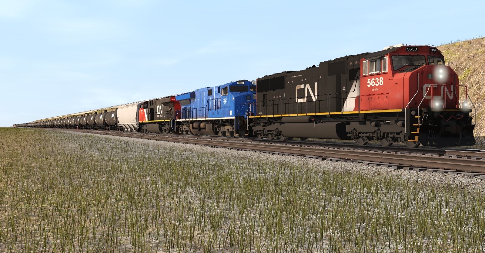Tags: Trainz: A New Era, Colton Crossing Module, CN SD75I PTC, GECX 2022 ET44AC, CN ES44AC 2976-2983 EF-644s, CN ET44AC EF-644t, HC4B NAHX 101000-101109 TRN 6351cf, T108 TILX 191242-191376 RPMG TRN 30120 gal, HTRX 89' flat car, HTRX 60ft flatcar