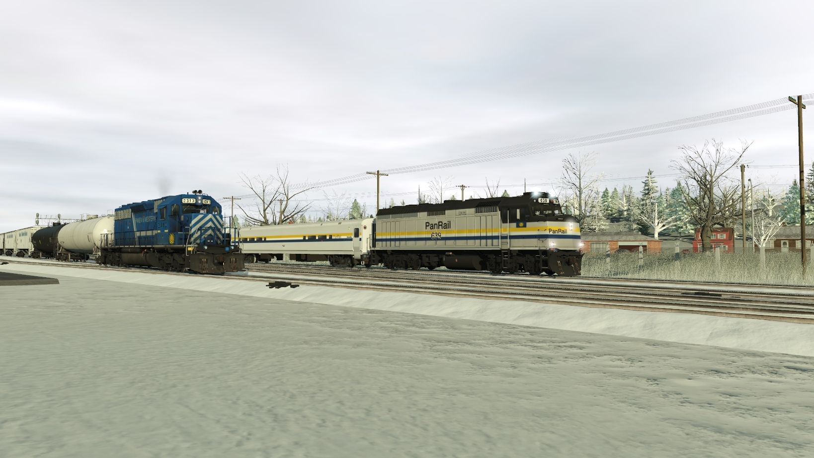 Tags: Trainz Railroad Simulator 2019, Centrella Sub Division - TRS19, Default, PanRail F40PH-2, Panem & Western SD40-2 Cab Light (P5), PanRail GP40-2, PanRail Horizon Dinette, AMOX LPG Tank, UTLX LPG Tank (Modern), PanRail Horizon Coach Car, Panem & Western 4750 Cvd Hopper 2, PanRail Baggage Car, Panem & Western 4750 Cvd Hopper 3, Panem & Western Cvd 4750 Hopper 5