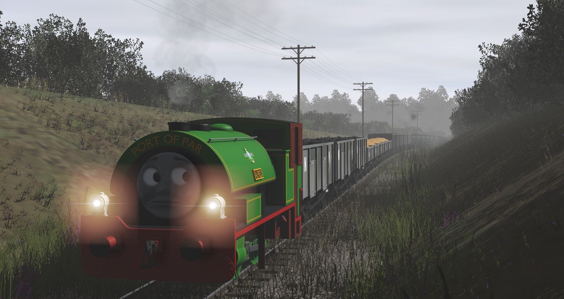 Tags: Trainz Railroad Simulator 2019, Cornish Mainline and Branches - TRS19, Default, TTTE - Alfred the Saddle Tank Twin 2010, TRW - BR 13T Sand Wagon, TRW - BR 21T Mineral Wagon, TRW - GWR 21T Coal Wagon, TRW - BR ZUV Shark Brakevan