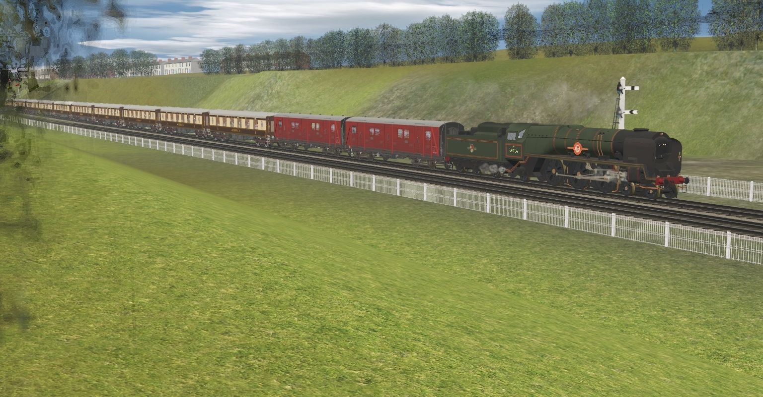 Tags: Trainz Railroad Simulator 2019, SUSSEX V2 TANE V6.76 (Sussex Lines UK + West Sussex), RB Merchant Navy, RB Merchant Navy 6000 Gal Late Logo Tender, BR guv luggage van, Pullman K Parlour First, Pullman 1951 Bar, Pullman K Kitchen First, Pullman K Parlour Third, Pullman K Brake Third