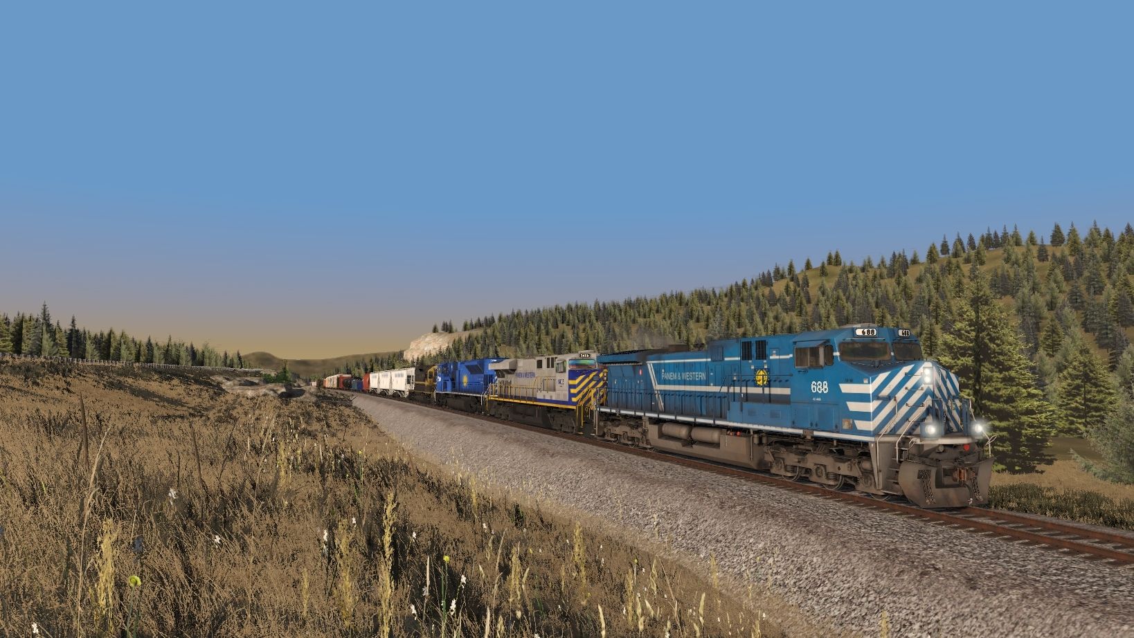 Tags: Trainz Railroad Simulator 2019, BN Oasis, Default, Panem & Western GE AC4400CW, Panem & Western GE ES44AC, Panem & Western EMD SD9043MAC, South Pass SD40-2 Ph1, Panem & Western EMD SD70M-2, BNSF Centerflow 3 Bay long hatch Swoosh, Michigan Rail 52ft Gondola, Mill Gondola 52' BFRR, UTLX 23000 gal Funnel-Flow tank car, CVRR 50ft HC Boxcar, CP&N 50ft Boxcar FMC