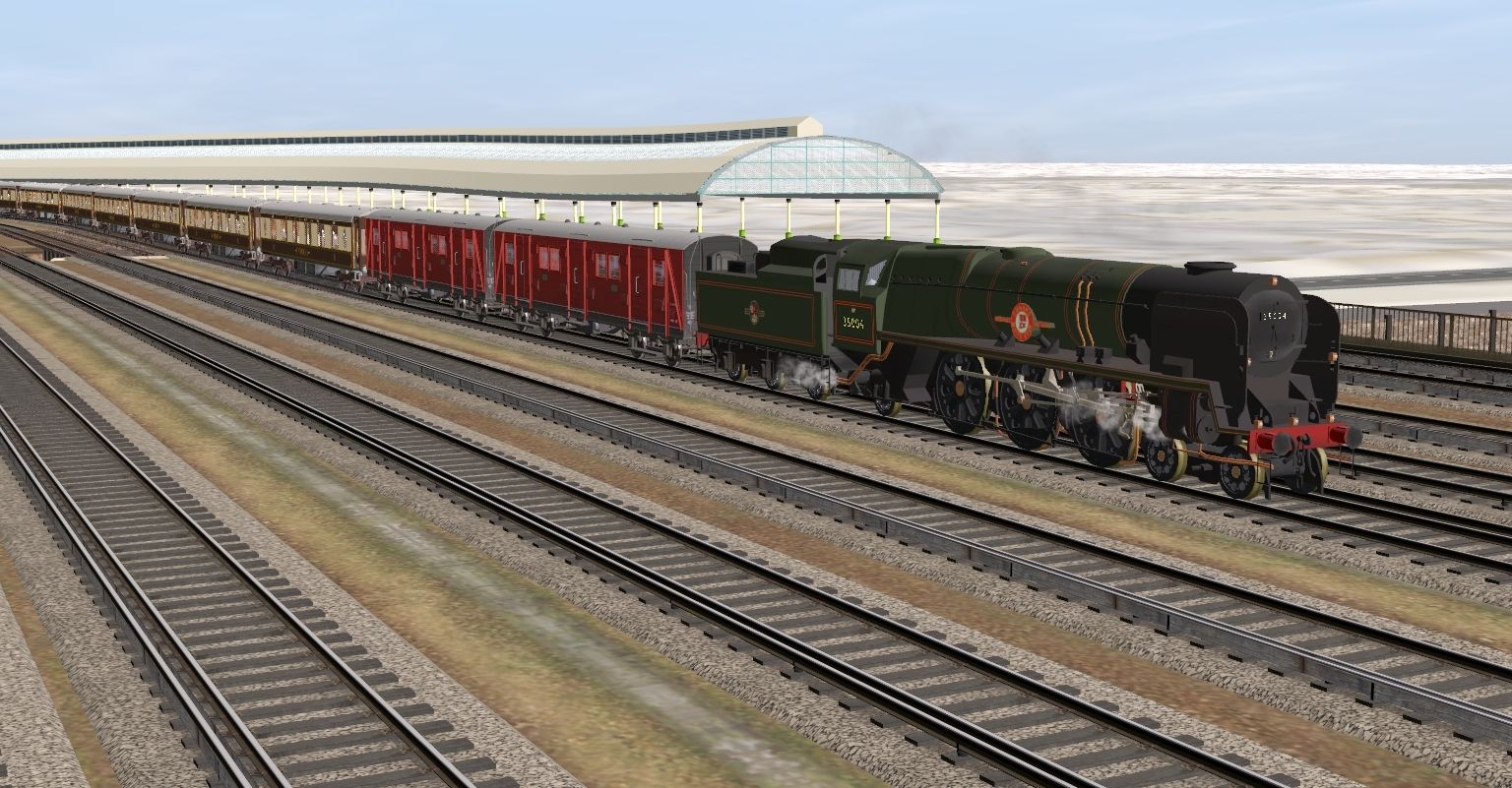 Tags: Trainz Railroad Simulator 2019, South London Test MK 2.05, RB Merchant Navy, RB Merchant Navy 6000 Gal Late Logo Tender, BR guv luggage van, Pullman K Parlour First, Pullman 1951 Bar, Pullman K Kitchen First, Pullman K Parlour Third, Pullman K Brake Third