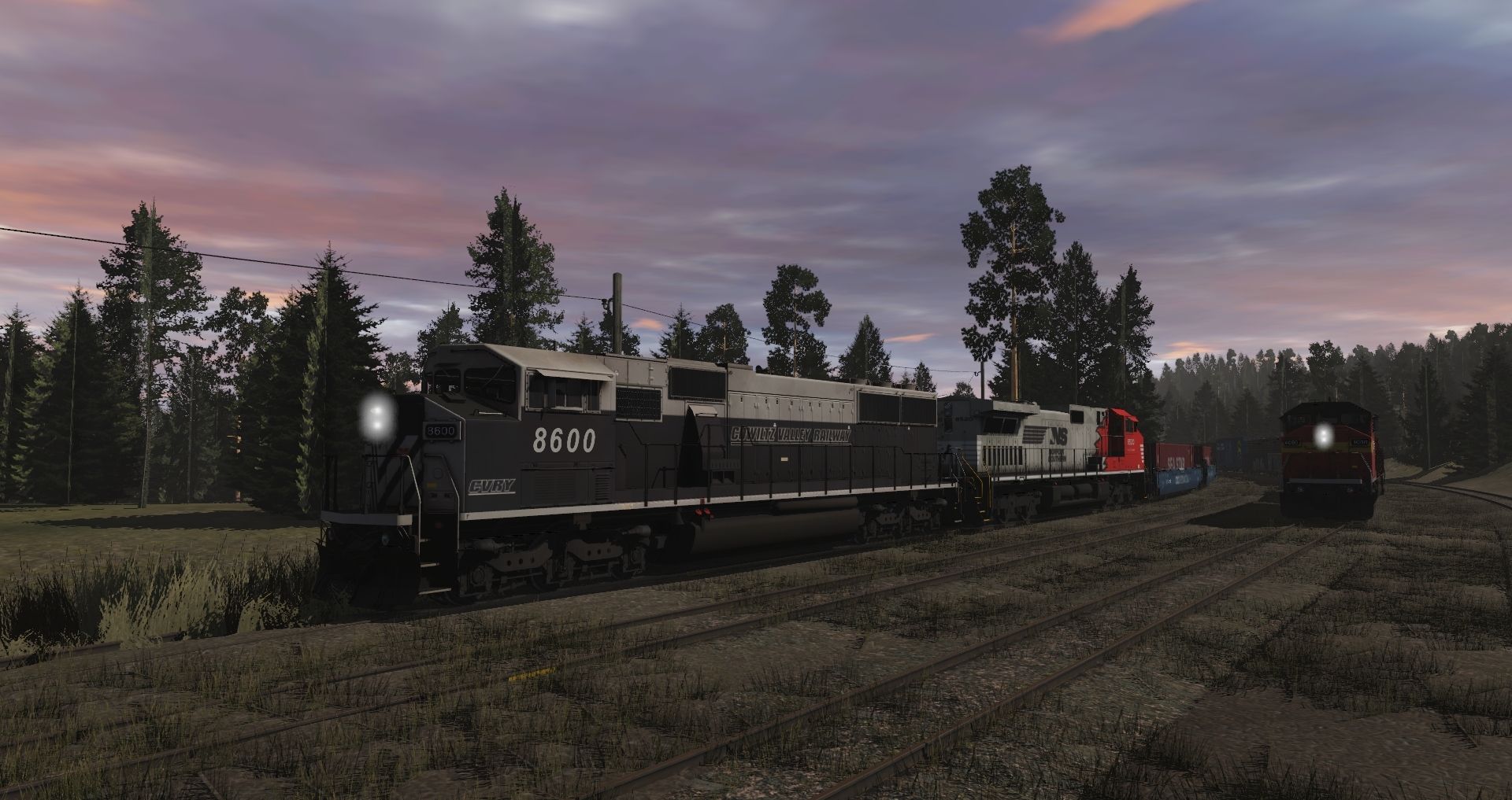 Tags: Trainz Railroad Simulator 2019, Eagle River Railway, 01 Monday - 14:57 21/05/2022 - 00:19:01, CVRY SD60M (Triclops), NS AC44C6CF #8520, KERR SD60M (Triclops), INRD SD60, NS C40-9, NS C40-9W Primer, ALL SD40-2 9437 H3, Campbell Logging SW1500 Torps (flexicoil), Campbell Logging SW1500 (flexicoil), Western Maryland Caboose Safety 1802, 52ft Gondola CEFX 2