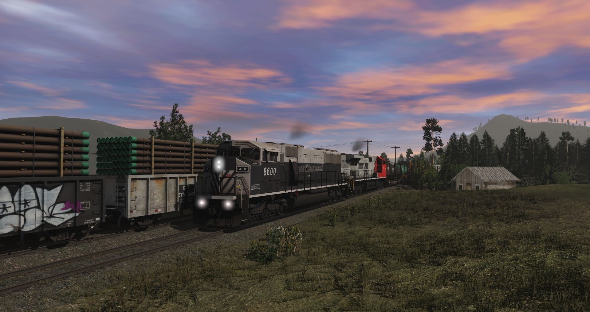 Tags: Trainz Railroad Simulator 2019, Eagle River Railway, 01 Monday - 14:57 21/05/2022 - 00:19:01, CVRY SD60M (Triclops), INRD SD60, KERR SD60M (Triclops), NS AC44C6CF #8520, 52ft Gondola CEFX 2, Western Maryland Caboose Safety 1802, 52ft Gondola CR, 52ft Gondola CEFX 1, TPTC Boxcar HiCube 60ft TWIN PEAKS 1, MP 60' ACF Boxcar DD (1967), PROX 23000 gal Funnel-Flow tank car black
