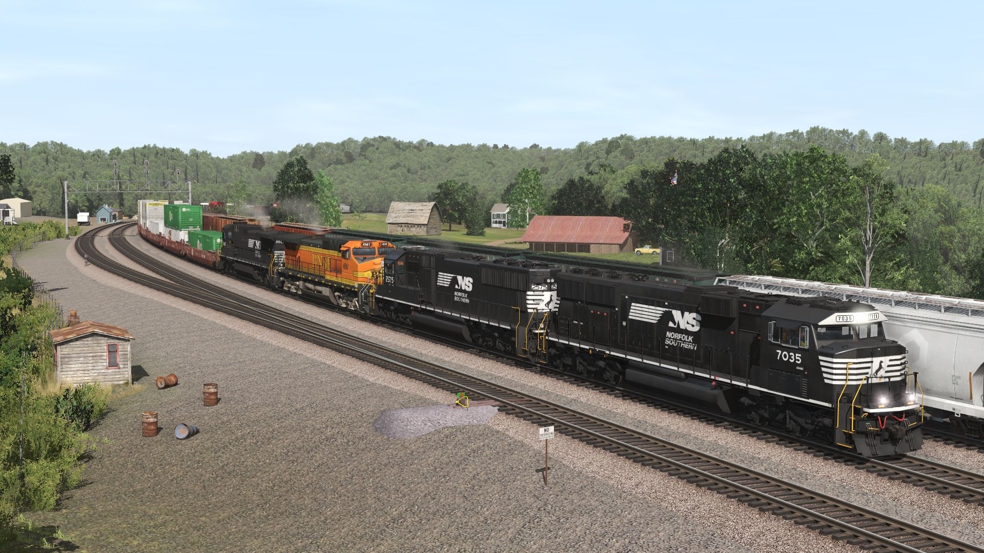Tags: Trainz Railroad Simulator 2019, NS Litchfield Grade, NS SD60E, NS (ex CR) SD70, BNSF C44-9W h2, NS C40-9 hh, 53ft BNSF H2 Wellcar Weathered (Single), T108 NATX 303300-303528 TRN 30120 gal, CC 766630 LO 4750 3 Bay Covered Hopper, 53ft BNSF H2 Wellcar (Single), CC 476115 LO 4750 3 Bay Covered Hopper, CCLX #51045 4 bay ACF, 53ft BNSF H3 Wellcar Weathered (Single)