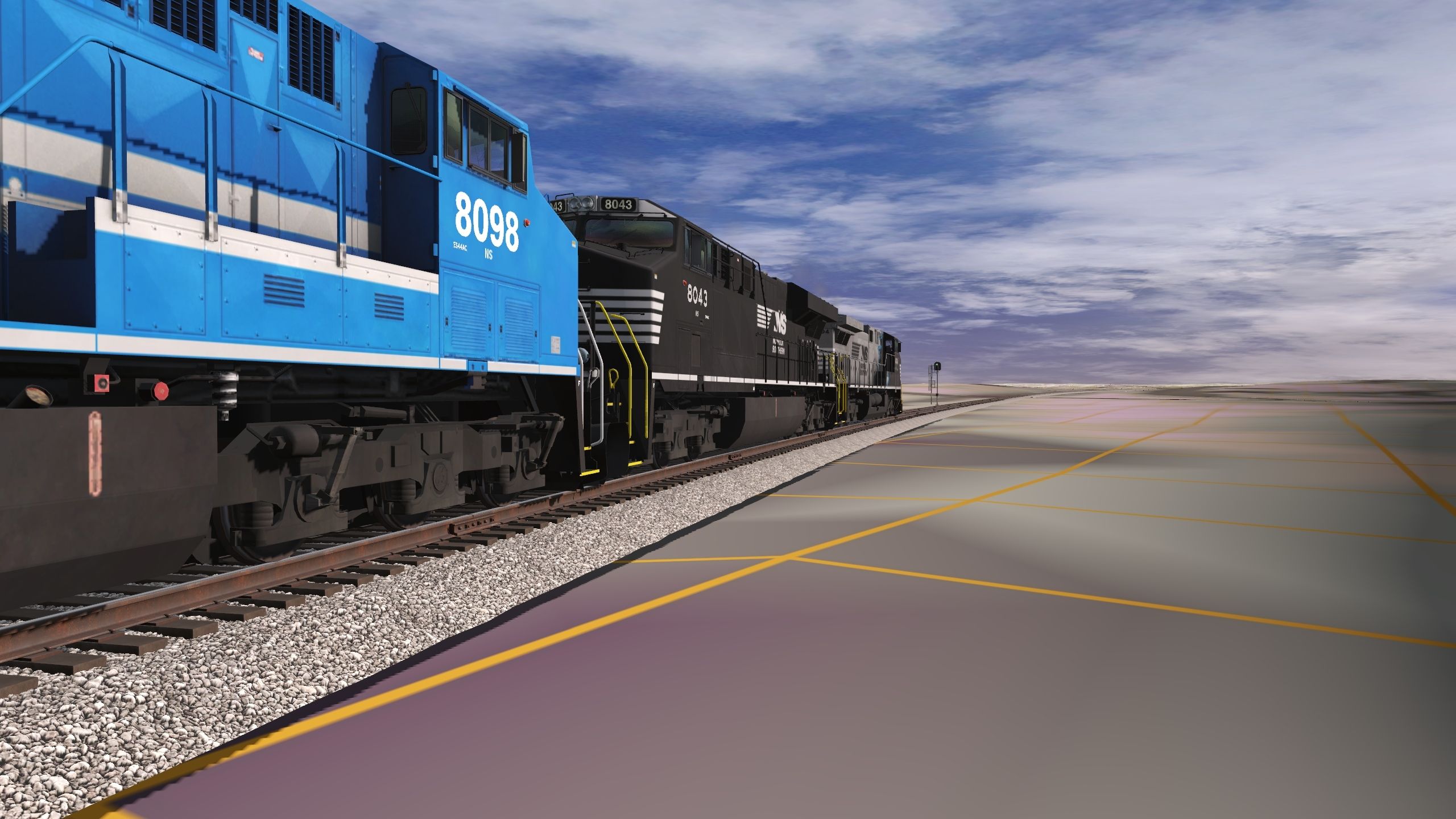 Tags: Trainz Railroad Simulator 2019, Charlotte Route jazz, Default 6/10/22, NS ES44AC CR Heritage 8098, NS ES44AC LV Heritage 8104, NS ES44AC, NS AC44C6M #4004, GWG33: DTTX 724917 A, GWG33: DTTX 724917 C, 57ft Spinecar B, 57ft Spinecar C, TTX NSC 53 Double stack Well, TTX NSC 53 Double stack Well, TTX NSC 53 Double stack Well