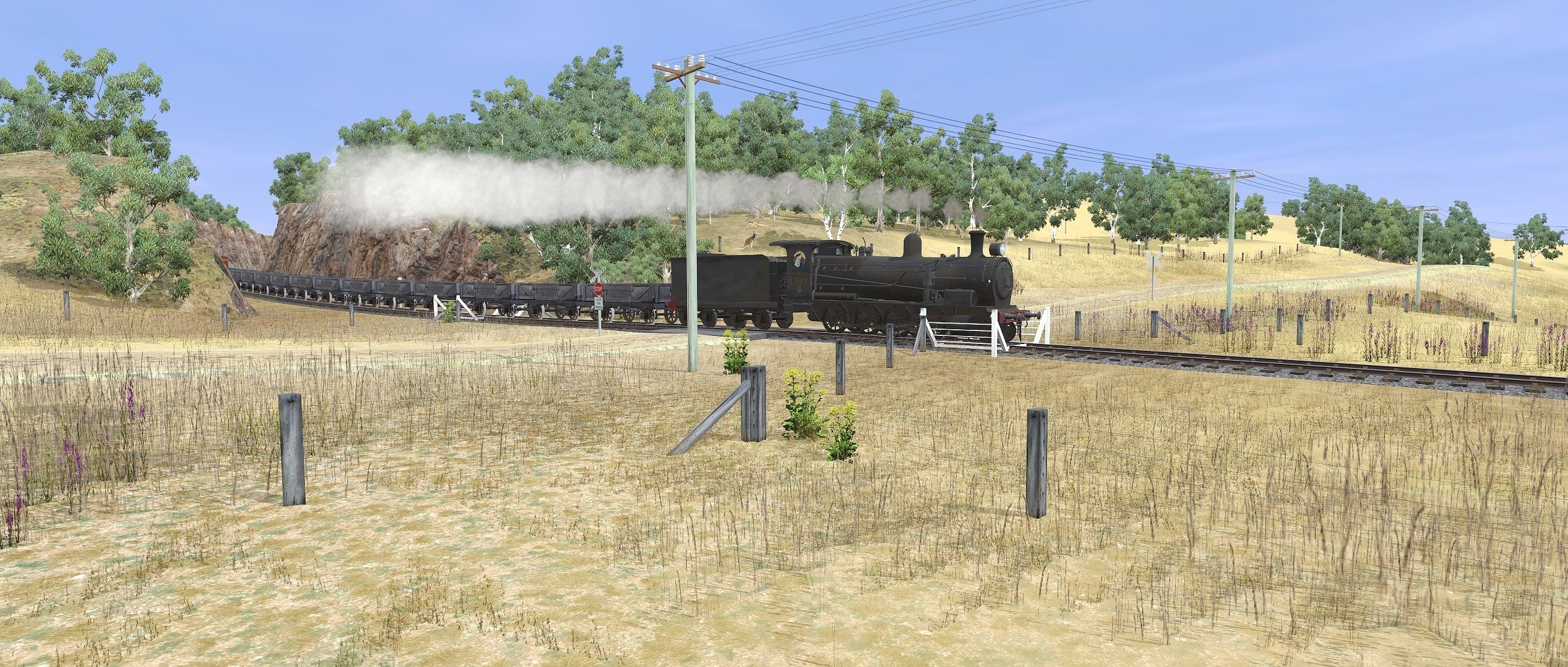 Tags: Trainz Railroad Simulator 2022, WeddinNSW: Blayney-Galong-Cootamundra, WeddinNSW: 1959 Lithgow Coal, NSWGR D53 standard goods engine weathered, NSWGR D53-class Wampu tender weathered, NSWGR S Truck Empty, MHG Brake Van