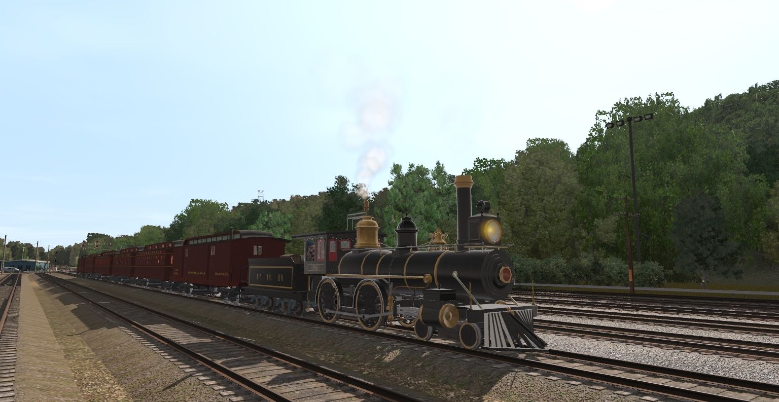 Tags: Trainz Railroad Simulator 2019, Datsun Junction, Default, PRR 4-4-0 556 Engine, PRR 4-4-0 556 Tender, PRR Wooden 47' Coach, PRR Wooden 34' Coach, PRR Wooden Baggage / Mail Car