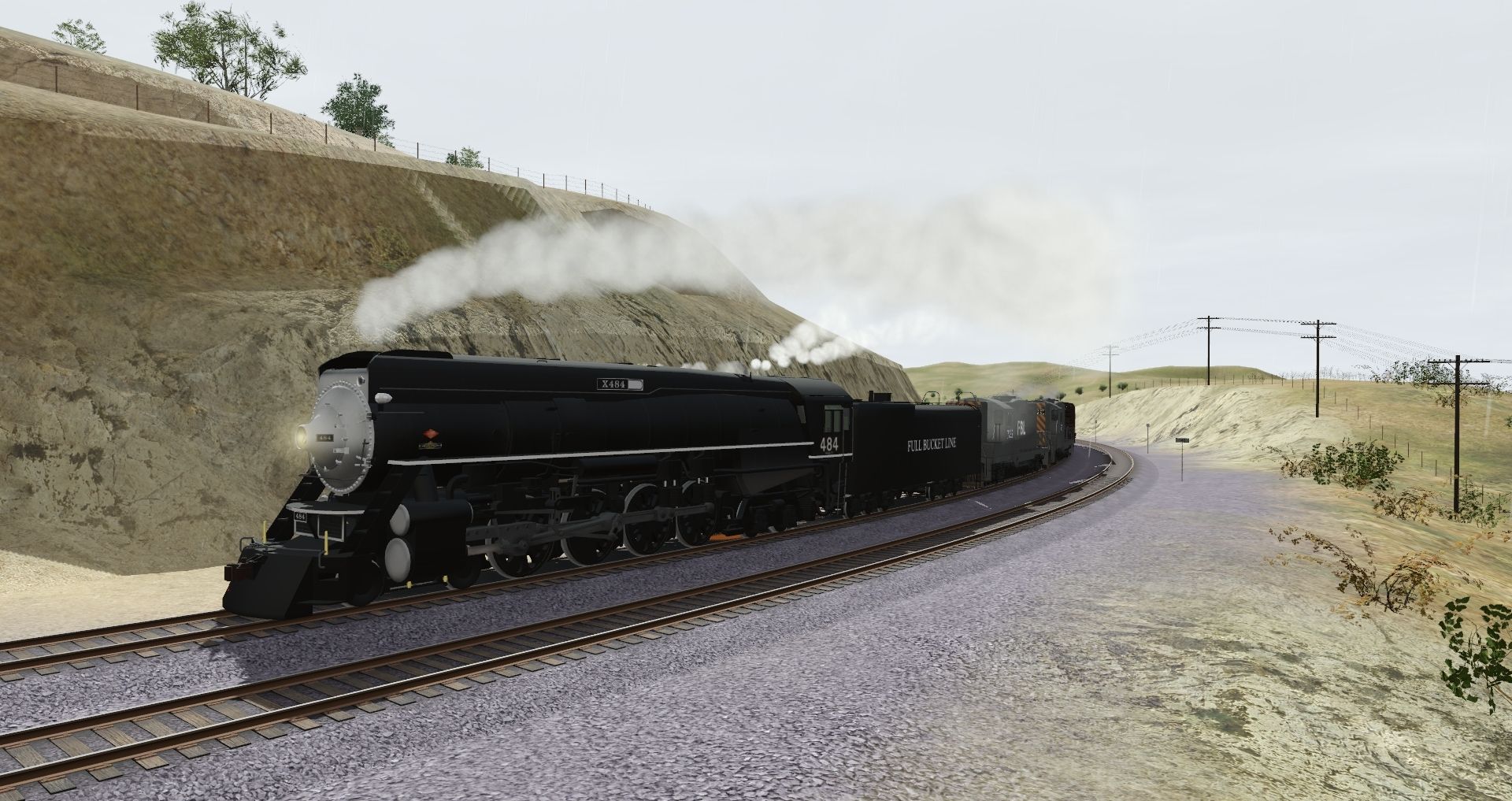 Tags: Trainz Railroad Simulator 2019, Mojave Sub Division, Default, FBL GS-64 #484 1944 Engine, FBL GP9, FBL GS-64 #485 1945 Tender, 50' Boxcar CB&Q Early 2, 40ft Reefer Union Pacific Automated Raiway #d, 40ft Boxcar WRA 01, 40ft Boxcar USRA Wood GN 2, 40ft Boxcar PM 01, Log Wagon Short Knuckle, NM&W 55 Ton Hopper, 50ton AAR Flatcar CP