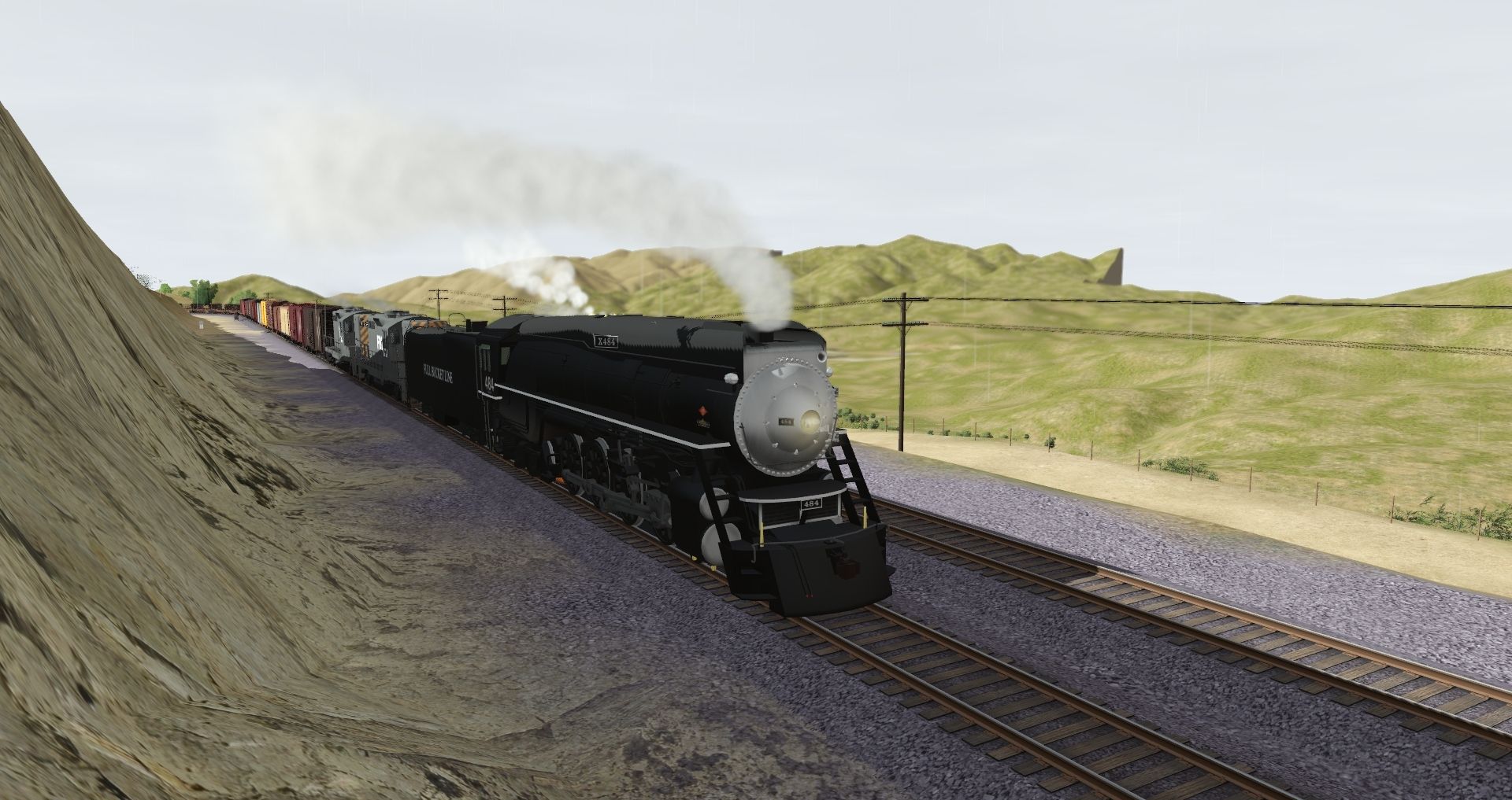 Tags: Trainz Railroad Simulator 2019, Mojave Sub Division, Default, FBL GS-64 #484 1944 Engine, FBL GP9, FBL GS-64 #485 1945 Tender, 50' Boxcar CB&Q Early 2, 40ft Reefer Union Pacific Automated Raiway #d, 40ft Boxcar WRA 01, 40ft Boxcar USRA Wood GN 2, 40ft Boxcar PM 01, Log Wagon Short Knuckle, NM&W 55 Ton Hopper, 50ton AAR Flatcar CP